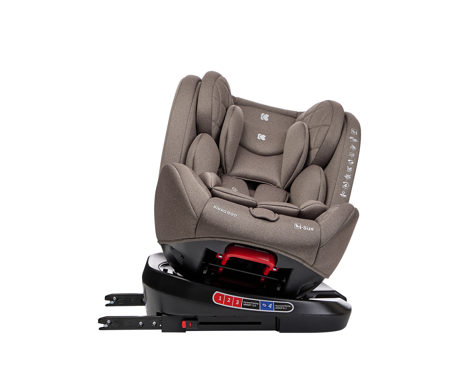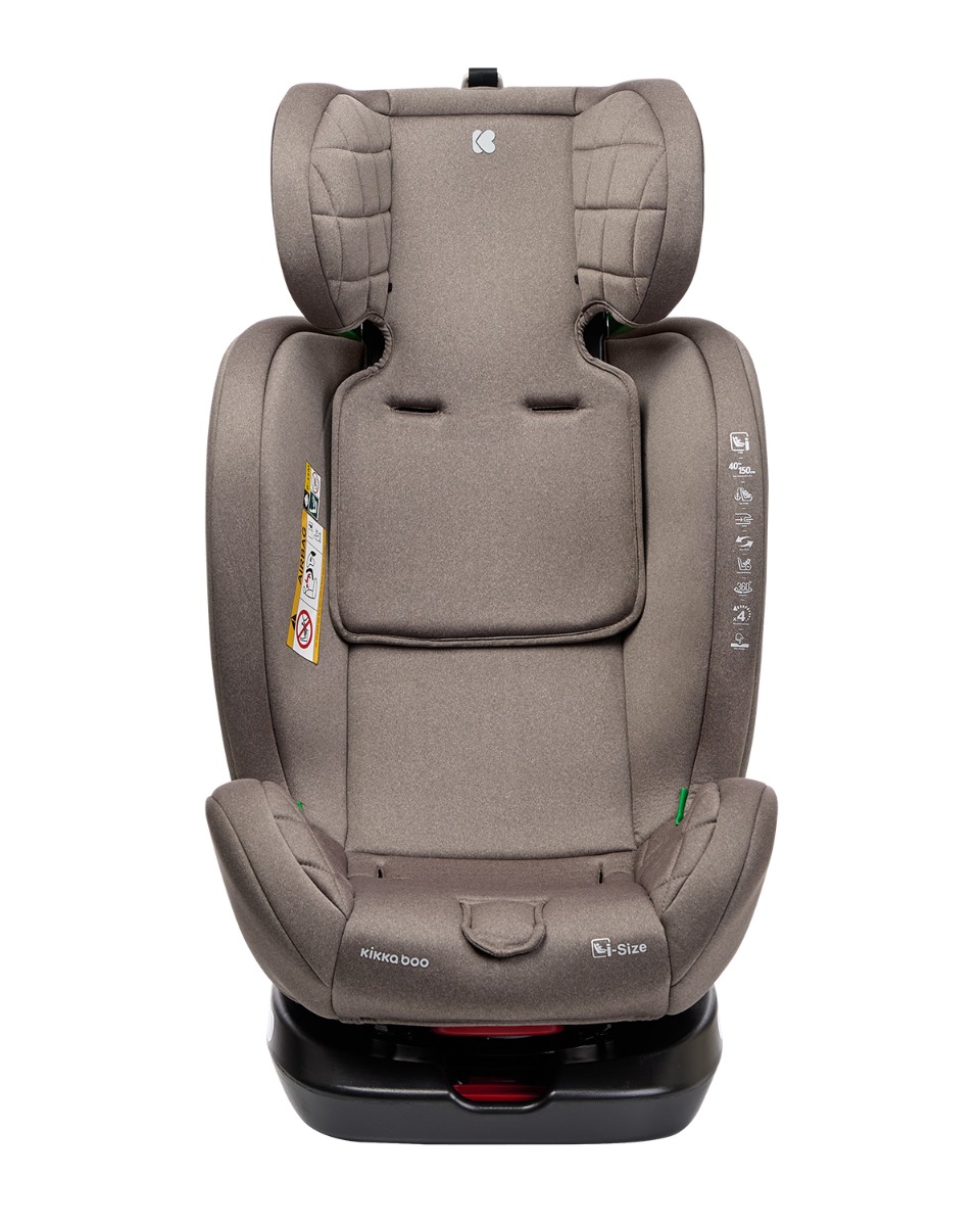 • i-SIZE (40-150 см);• Подходящо за използване в посока обратна на движението от 40 до 105 см;• Подходящо за използване по посока на движението от 76 до 150 см;• Регулируем наклон на седалката в 4 позиции в посока обратна на движението и по посока на движението;• 360 градуса въртене на седалката;• ISOFIX система за допълнителна сигурност и лесно захващане към седалката на автомобила;• Top tether (горна лента) за допълнитена сигурност;• Регулируема облегалка за глава в 5 позиции;• 5-точков предпазен колан с меки раменни подложки и покритие на долната катарама;• Регулатор на коланите;• Мека и удобна възглавничка за по-голям комфорт;• Мемори пяна на подложката за глава. Тествано в съответствие с Регламент за изпитване ECE R129/03 от ATS San Marino. Размери:- Продукт: 47x46x63-83 см / 11 кг- Кашон: 66×44.5×52 см / 12 кг / 1 бр/кашон