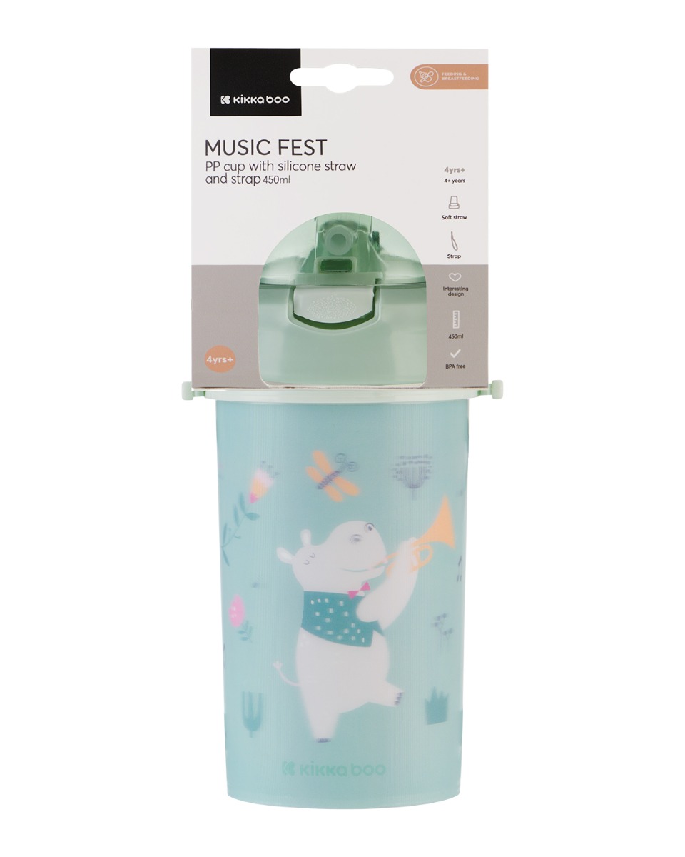 Чаша със силиконовa сламка и каишка 450мл Music Fest Mint