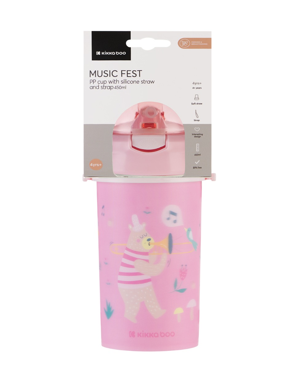 Чаша със силиконовa сламка и каишка 450мл Music Fest Pink