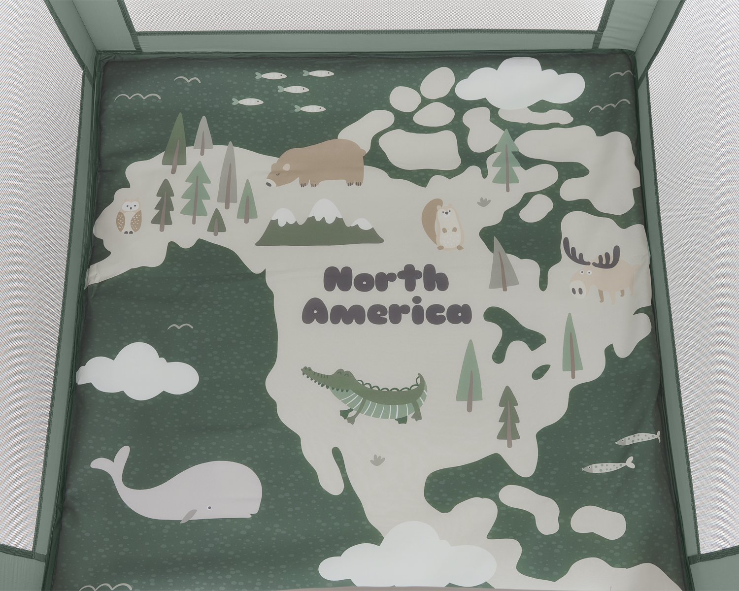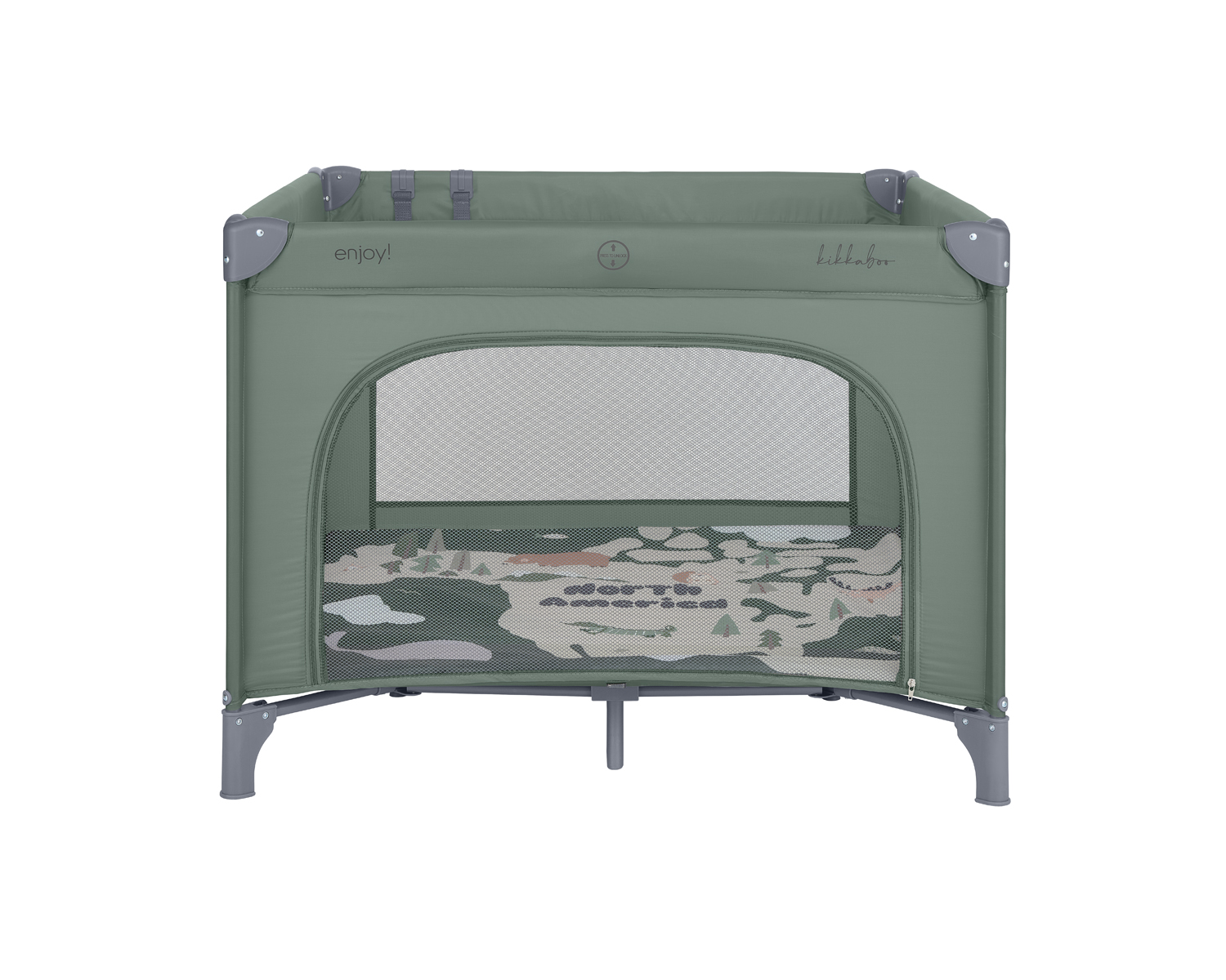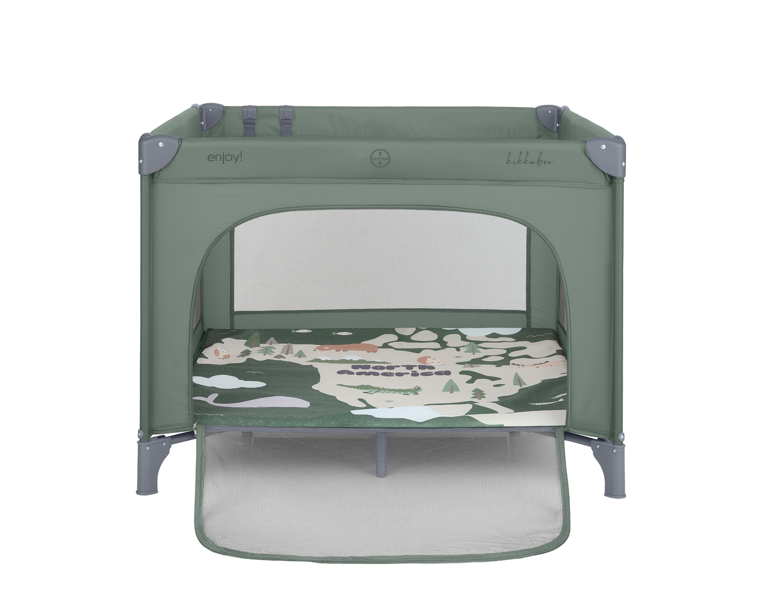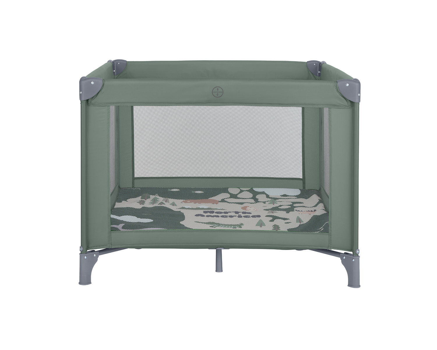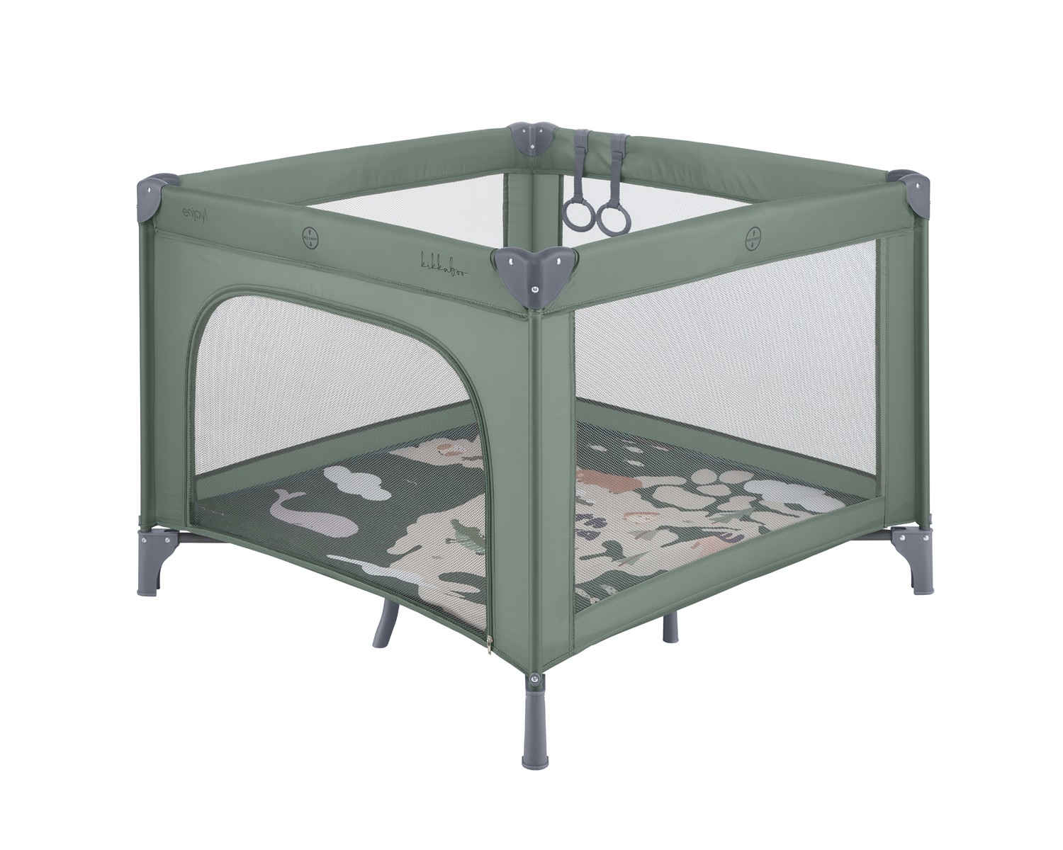 • Квадратна кошара за игра, подходяща за деца до 36 месеца; • Мрежести части за по-добра вентилация;• Преден отвор с цип;• Халки за хващане;• Мека подложка; • Закачлив дизайн;• Компактна в сгънато положение;• Чанта за пренасяне. Размери:- Продукт: 100x100x77 см / Сгъната: 20x89x20 см / 8.65 кг- Кашон: 21.3×90.5×21.3 см / 9.15 кг / 1 бр/кашон