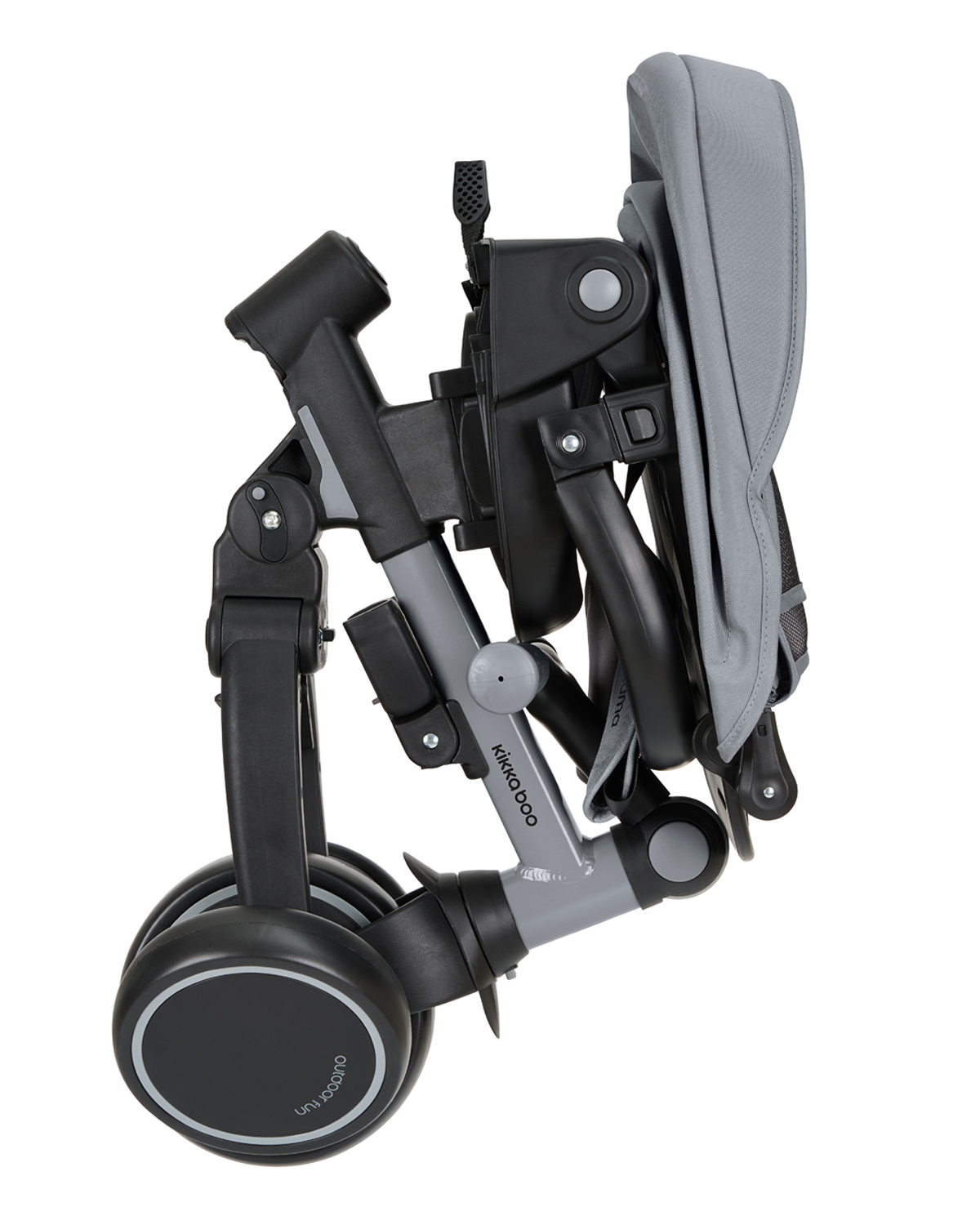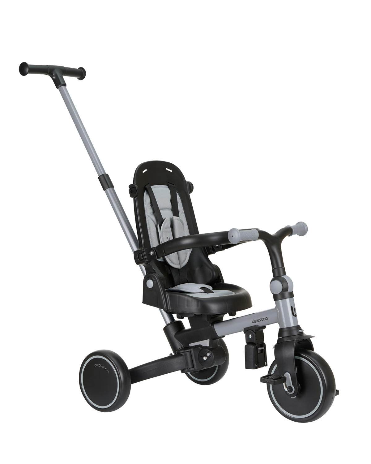 • Подходяща за деца на възраст от 12 до 60 месеца;• Сгъваем дизайн;• Многофункционална триколка 8 в 1: – Позиция гледане напред (12-18 м); – Позиция с лице назад (12-18 м); – Позиция с наклон на облегалката (12-18 м); – Режим на бутане и каране с предпазен борд (18-24 м); – Режим на бутане и каране без облегалка (18-24 м); – Режим на каране без сенник (24-30 м); – Триколка без педали (24-30 м); – Велосипед (36-60 м);• Лека и издръжлива алуминиева рамка;• Сгъваеми поставки за крака;• Заключващ механизъм на педалите;• 4 позиции регулиране на предното кормило;• 3 позиции регулиране на задното кормило и родителски контрол;• Реверсивна седалка;• Регулируем наклон на облегалката в 4 нива;• Регулируем и отстраняем сенник;• 5-точкова система за обезопасяване и свалящ се предпазен борд;• Сгъване с един бутон;• Спирачка на задните колела с едно докосване;• Свалящи се педали;• Дръжка за носене в сгънато положение;• Чанта за аксесоари. Размери:- Триколка: 71x49x93-99 см / Сгъната: 55x49x38 см / 6.4 кг- Цветна кутия: 69.5×20.5×34.5 см / 7.4 кг