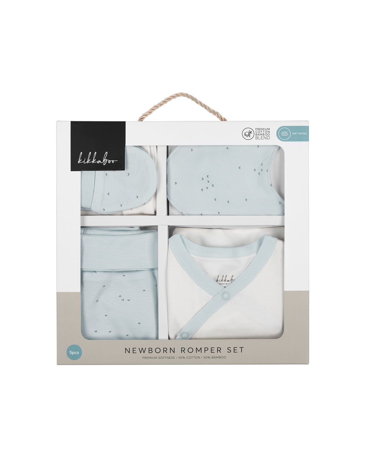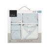 • Мек и нежен комплект за изписване на новородено, изработен от премиум интерлок трико;• Включва необходими дрешки за първите дни на бебето: ританки, боди с дълъг ръкав, шапка, ръкавички, лигавник;• Дизайнерски принтове в нежни цветове и закачливи детайли; • Лесно закопчаване с тик-так копчета;• Подходящ за бебета 0-3 месеца;• Състав: 50% памук, 50% бамбук;• Луксозна подаръчна кутия. Размери:- Подаръчна кутия: 27x26x3 см / 0.325 кг- Кашон: 57x29x35 см / 10.73 кг / 20 бр/кашон
