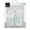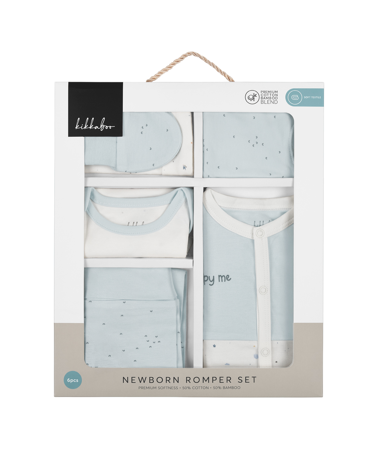 • Мек и нежен комплект за изписване на новородено, изработен от премиум интерлок трико;• Включва необходими дрешки за първите дни на бебето: боди с къс ръкав, гащеризон с дълъг ръкав, ританки, шапка, ръкавици, лигавник;• Дизайнерски принтове в нежни цветове и закачливи детайли;• Лесно закопчаване с тик-так копчета;• Подходящ за бебета 0-3 месеца;• Състав: 50% памук, 50% бамбук;• Луксозна подаръчна кутия. Размери:- Подаръчна кутия: 29x34x3 см / 0.455 кг- Кашон: 62x37x35 см / 12.625 кг / 20 бр/кашон