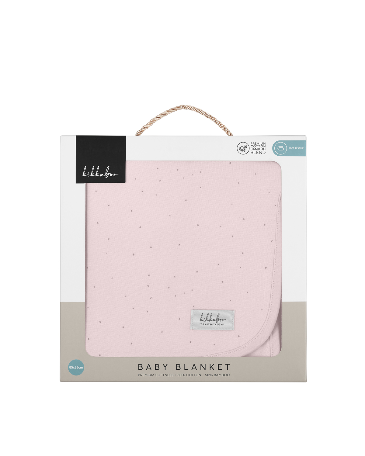 •Двупластово бебешко одеяло от меко и нежно премиум интерлок трико;• Висококачествена дишаща материя;• Луксозна изработка с кант;• Дизайнерски принт в нежни цветове; • Състав: 50% памук, 50% бамбук;• Луксозна подаръчна кутия;• Размер: 85х85см Размери:- Подаръчна кутия: 24x24x3 см / 0.43 кг- Кашон: 52x52x35 см / 3.7 кг / 40 бр/кашон