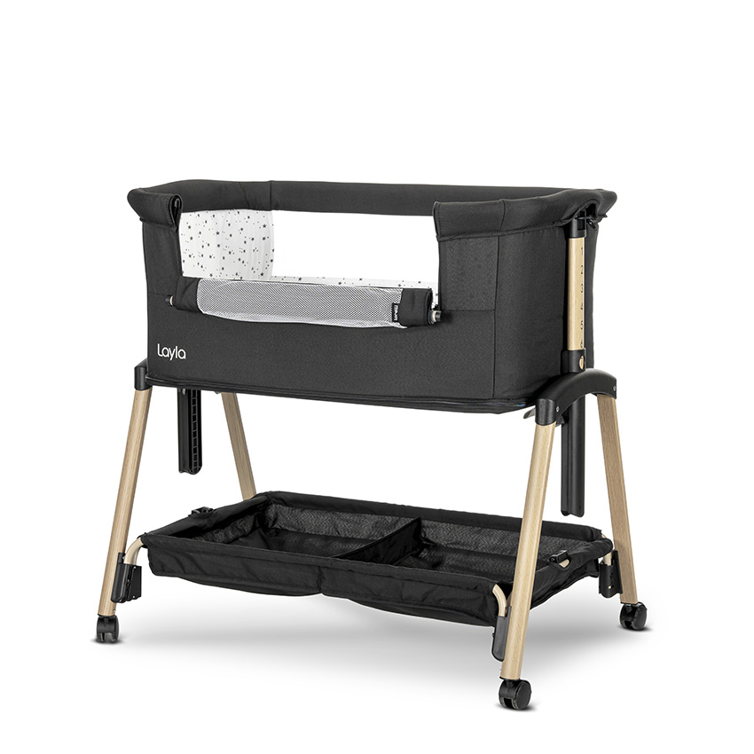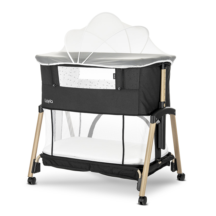Колелa за лесно придвижване,кош за аксесоари,размери,Антирефлуксна система,безопасно място за игра,подходящо за закрепване към повечето легла посредством допълнителни ремъци,сгъваема до компактни размери,лесна за транспортиране,матрак,подвижна страна с мрежеста част за по-добро наблюдение на бебето,комарник,Регулиране на височината в 7 позиции,Лесен и сигурен достъп до бебето през нощта в първите месеци след раждането,За спане///