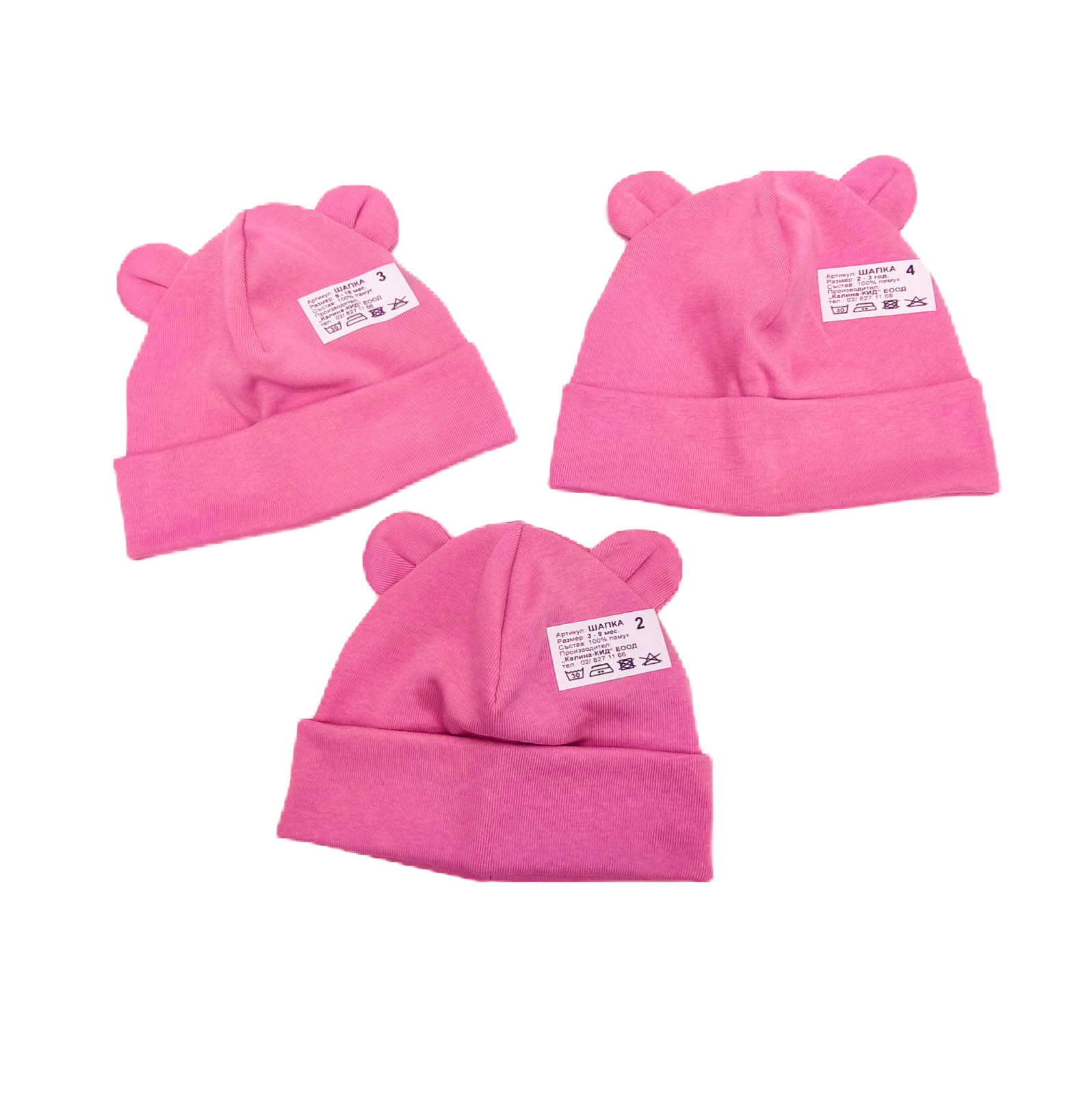 Пролетна бебешка шапка с ушички в тъмно розово