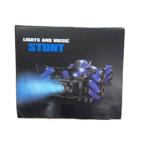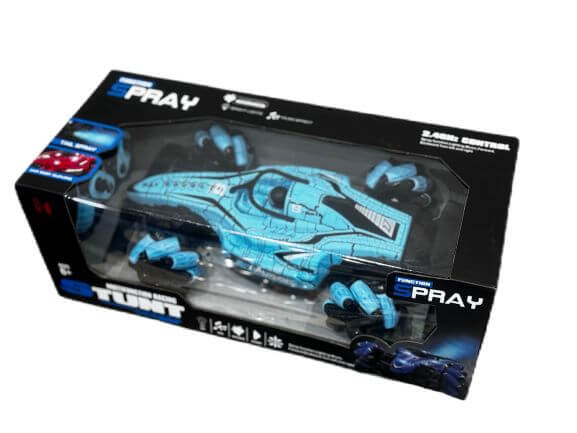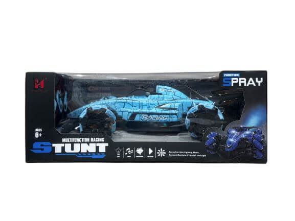 Радиоуправляема кола Multifunction Racing Stunt Spray, която предлага различни функции като осветление, музика и ефект на водна пара. Тя е предназначена за деца на възраст над 6 години. Колата разполага с резервоар за вода, който при работа отделя фина мъгла, създавайки ефект на дим или пара. Вградените LED светлини и динамична музика допринасят за по-вълнуващо и завладяващо изживяване. Управлява се чрез дистанционно управление, което позволява движение напред, назад, завой наляво и надясно. Като каскадьорска кола (stunt car), тя може да изпълнява различни маневри, като завъртане на 360 градуса и движение в различни посоки.