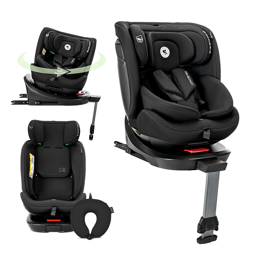 мека подложка за главата,мека подложка за тялото,размери,направляващи водачи за Isofix системата (вкл. в комплекта),регулируема облегалка,ротация на 360 градуса,RWF – инсталация в посока, обратна на движението 40-105см,Система за регулация на предпазните колани спрямо растежа,SPS – система за странична защита,FF – инсталация по посока на движението 76-150 см,EPS – за по-голяма сигурност,Лесен монтаж чрез ISOFIX и горен колан за ръст 40-105 см и с обезопасителен колан за възрастни със или без ISOFIX закрепване за ръст 100-150 см,Възглавничка за път,Одобрено е съгласно ECE R129/04///