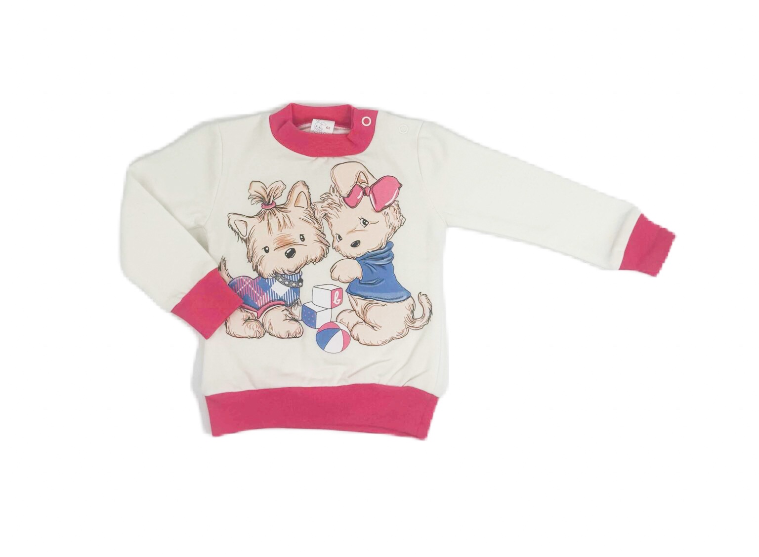 Блуза за момиче с изображение на красиви кутрета. Изработена е от мека памучна ватирана материя.
