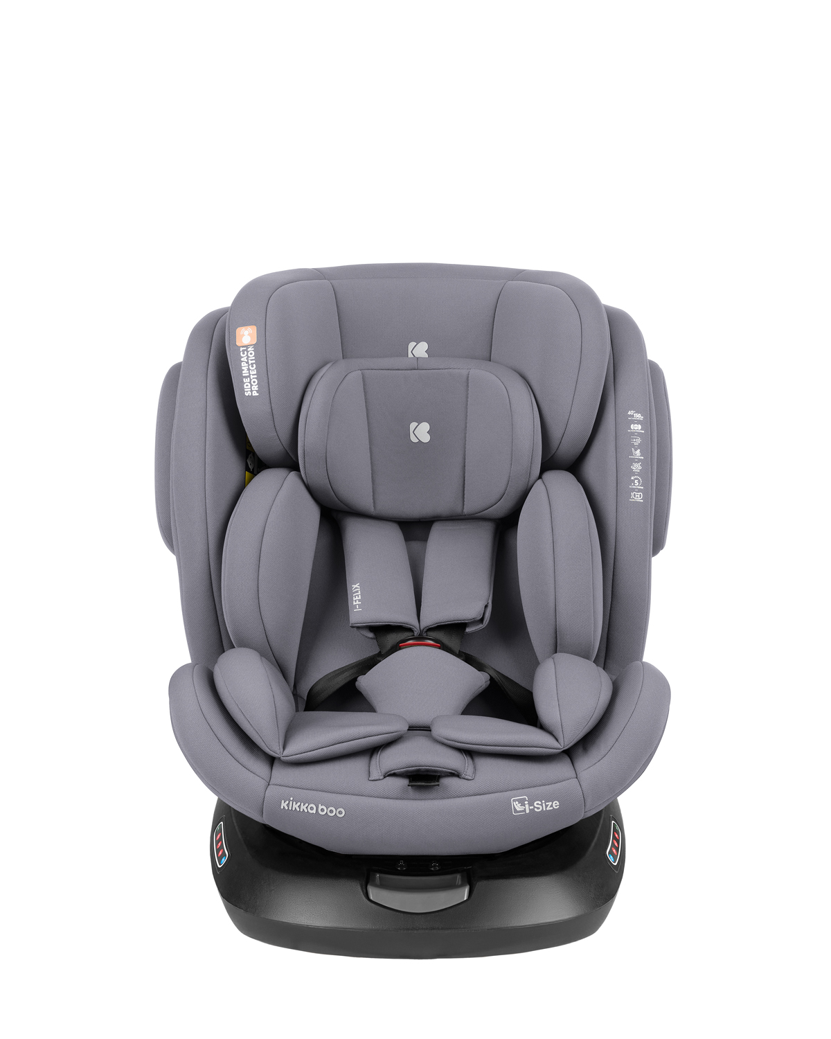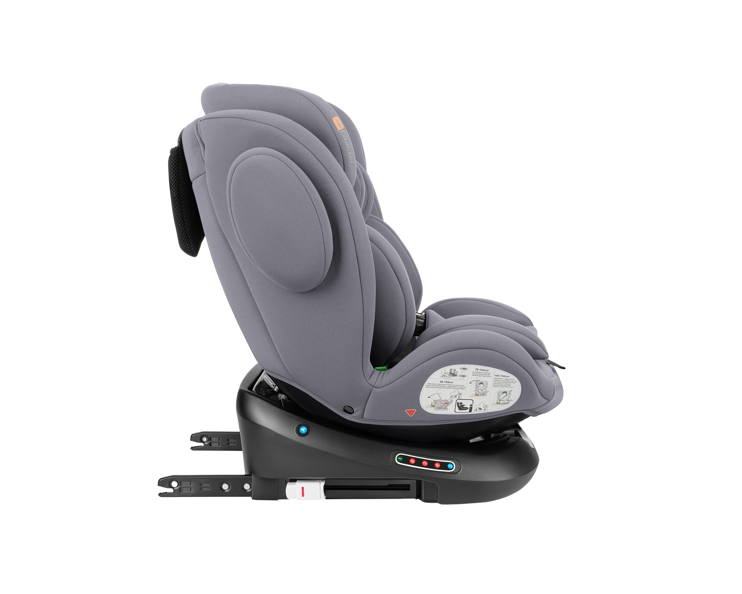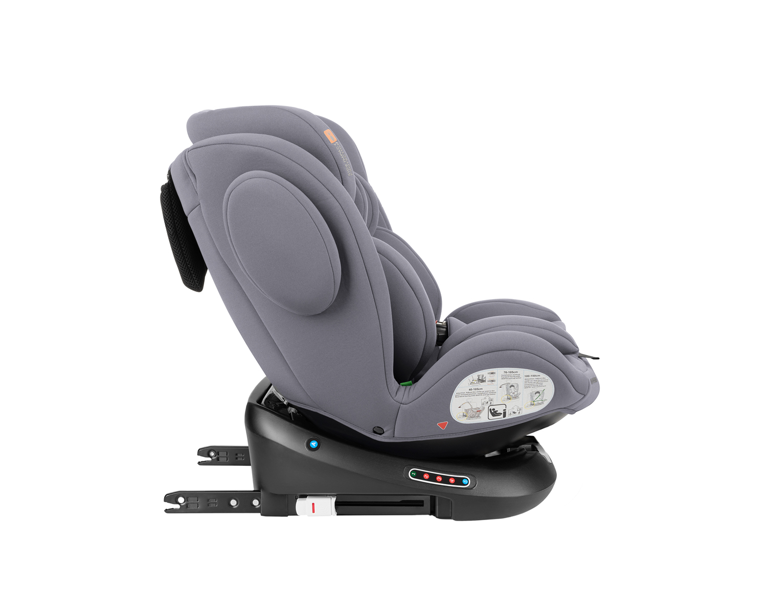 • i-SIZE (40-150 см);• Подходящо за използване в посока обратна на движението от 40 до 105 см;• Подходящо за използване по посока на движението от 76 до 150 см;• Регулируем наклон на седалката в 5 позиции в посока на движениетo и 3 позиции по посока обратна на движението;• 360 градуса въртене на седалката;• ISOFIX система за допълнителна сигурност и лесно захващане към седалката на автомобила;• Top tether (горна лента) за допълнитена сигурност;• SPS – система за защита от страничен удар;• Регулируема облегалка за глава в 11 позиции;• 5-точков предпазен колан с меки раменни подложки и покритие на долната катарама;• Регулатор на коланите. Тествано в съответствие с Регламент за изпитване ECE R129/03 от TÜV SÜD. Размери:- Продукт: 46.5x51x60-81 см / 10.8 кг- Кашон: 81.5×48.5×50.5 см / 24 кг / 2 бр/кашон