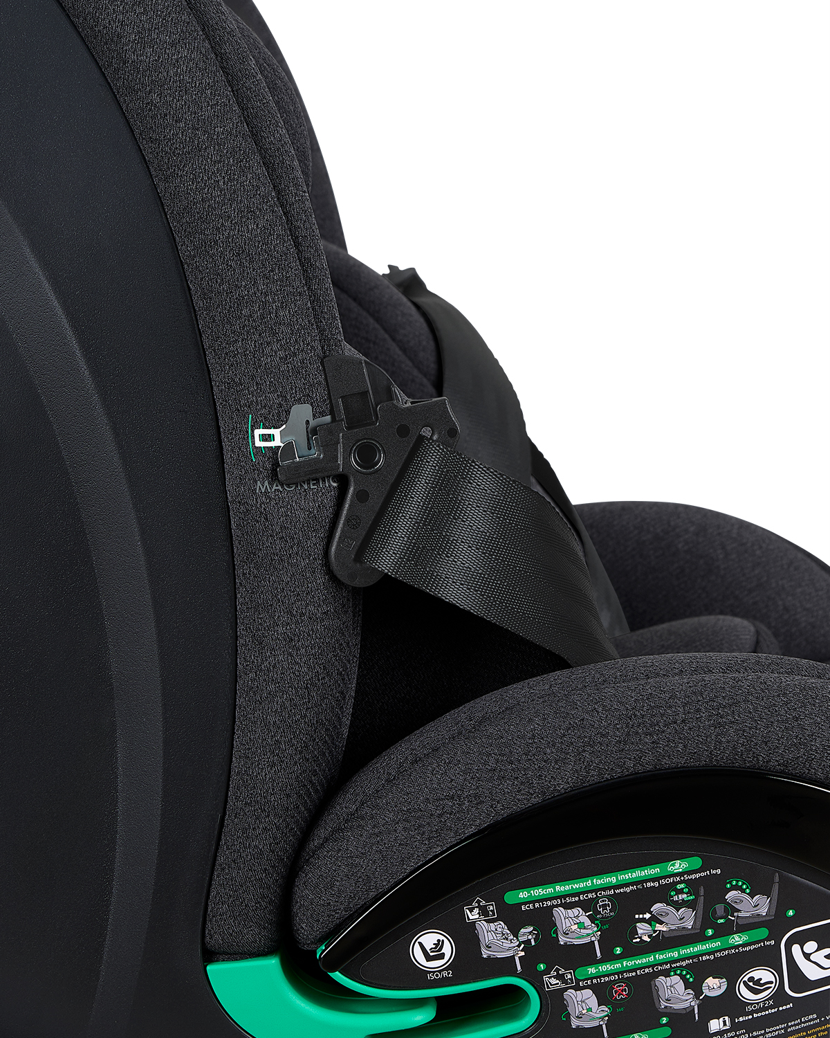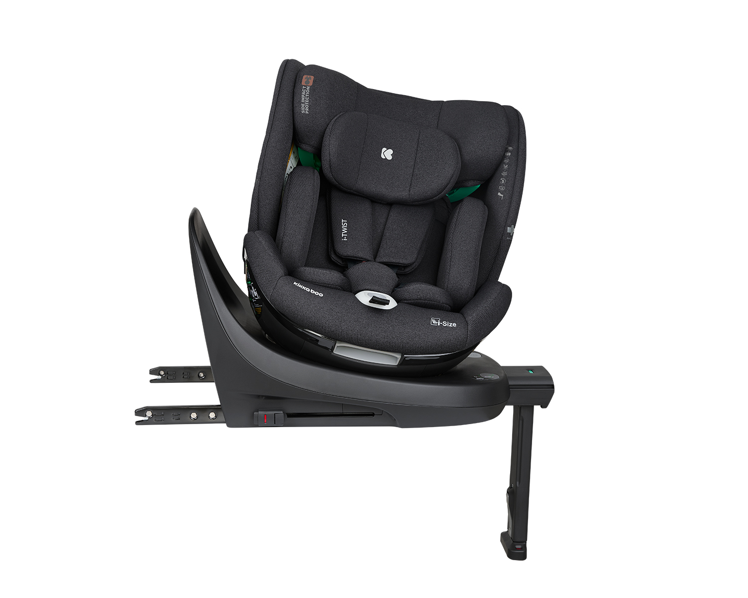 • i-SIZE (40-150 см);• Подходящо за използване в посока обратна на движението от 40 до 105 см;• Подходящо за използване по посока на движението от 76 до 150 см;• Регулируем наклон на седалката в 5 позиции в посока на движението и 5 позиции в посока обратна на движението;• 360 градуса въртене на седалката;• Опорен крак;• ISOFIX система за допълнителна сигурност и лесно захващане към седалката на автомобила;• SPS – система за защита от страничен удар;• Борд против преобръщане;• Регулируема облегалка за глава в 14 позиции;• 5-точков предпазен колан с меки раменни подложки и покритие на долната катарама;• Регулатор на коланите;• Мека и удобна възглавничка за по-голям комфорт;• Мемори пяна на подложката за глава. Тествано в съответствие с Регламент за изпитване ECE R129/03 от TÜV NORD. Размери:- Продукт: 51x44x59-82.5 см / 14 кг- Кашон: 56.5×45.5×63 см / 16.1 кг / 1 бр/кашон