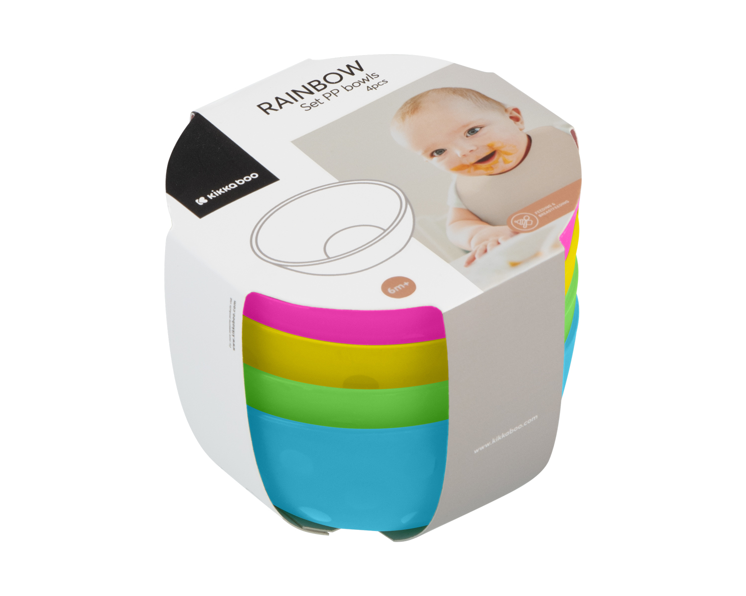 • Подходящ за деца от 6м+;• Комплектът включва 4 бр купички;• Не стерилизирайте в парен стерилизатор;• Подходящ за микровълнова фурна, миялна машина и фризер; • Вместимост 300мл;• PP (полипропилен) материал;• Без BPA;• Може да се комбинира със сет PP чинийки 4бр Rainbow и сет PP лъжички 4бр Rainbow. Размери:- Купа: 11x11x5.2 см / 0.026 кг- Опаковка: 14.1×11.1×9.7 см / 0.1199 кг- Вътрешен кашон: 34.5x23x19.8 см / 1.6 кг / 12 бр/вътрешен кашон- Кашон: 47.7x36x41.6 см / 7.1 кг / 48 бр/кашон