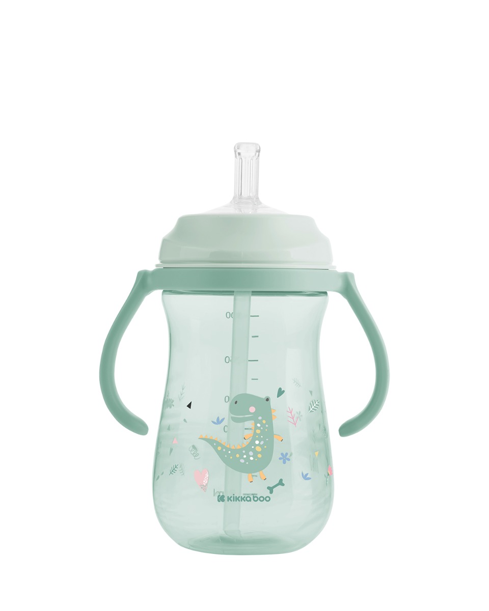 Чаша със силиконовa сламка 300мл Dino World Mint