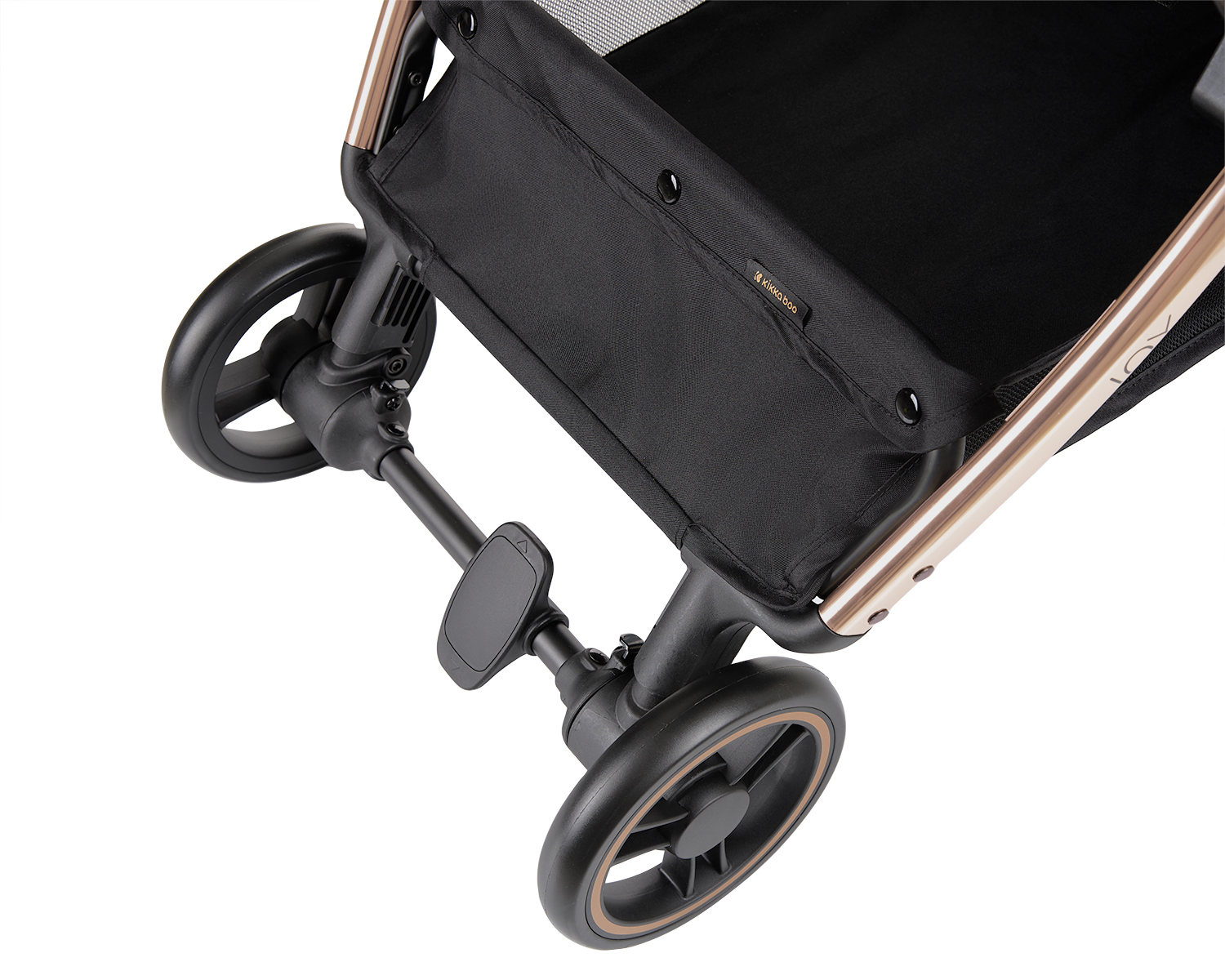 • Подходяща от раждането до 22 кг;• Лека алуминиева рамка;• Система за автоматично сгъване с едно докосване;• Компактна в сгънато положение;• Кожена дръжка;• Сенник с прозорец за наблюдение на детето;  • Отстраняем кожен предпазен борд;• 5-точков предпазен колан с меки раменни подложки и покритие на долната катарама;• 360 градуса въртене на предните колела;• Амортисьори на колелата;• Джоб на задната част на седалката;• Задна спирачка с едно докосване;                                                                                                                                                                                                                                             • Регулируема полуавтоматична облегалка;• Регулируема опора за крачета в 2 позиции;• Тествано в съответствие с EN 1888-2:2018+A1:2022 от Intertek Testing Services. Включени аксесоари: Поставка за чаша. Размери:- Продукт: 69x45x103 см / Сгъната: 26x45x61-80 см / 6.6 кг- Кашон: 47x23x65 см / 7.5 кг / 1 бр/кашон