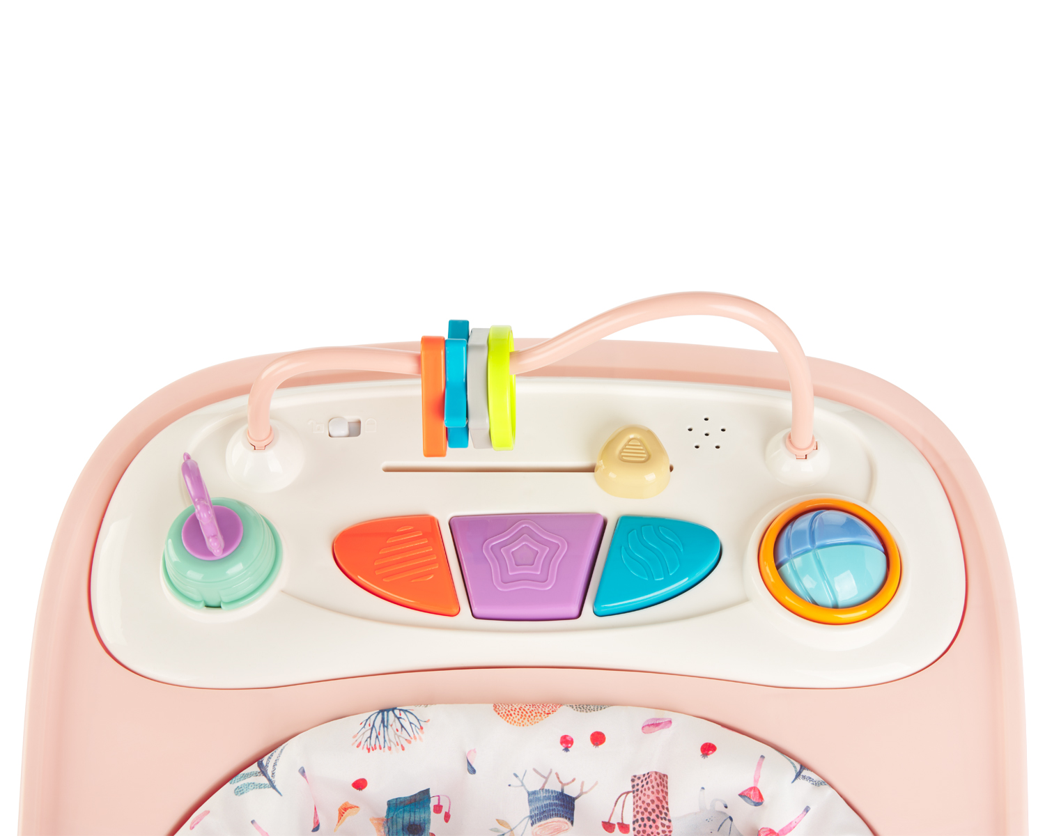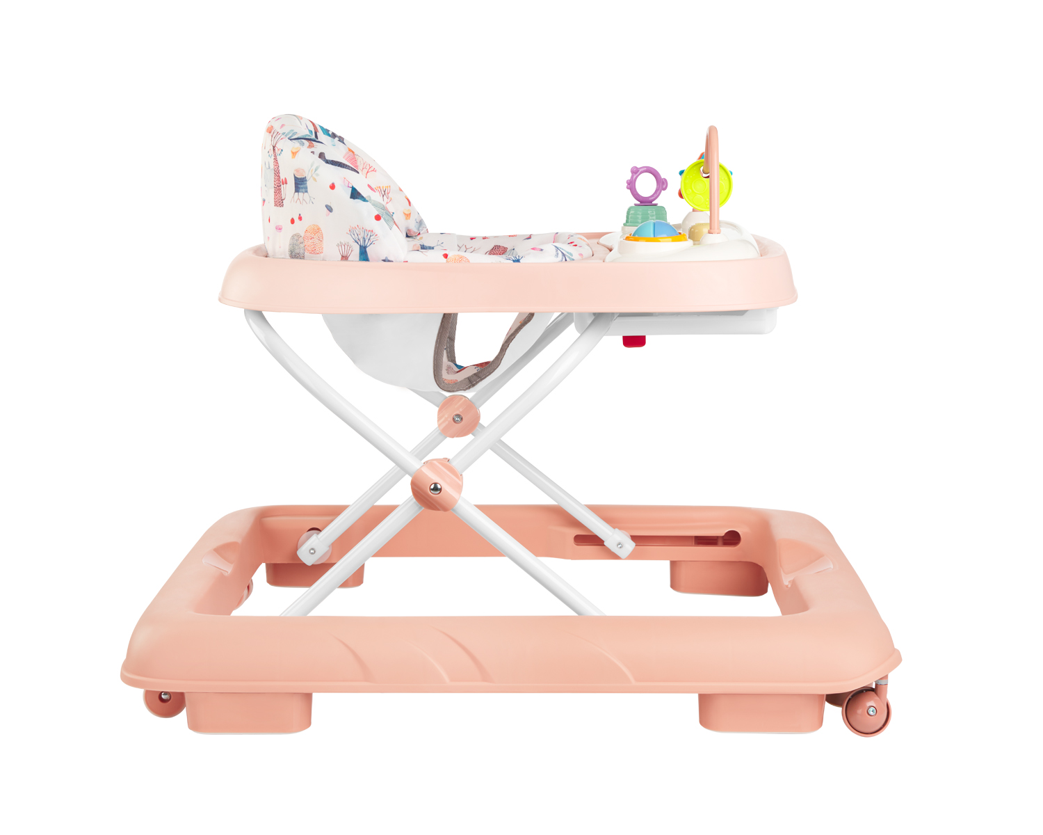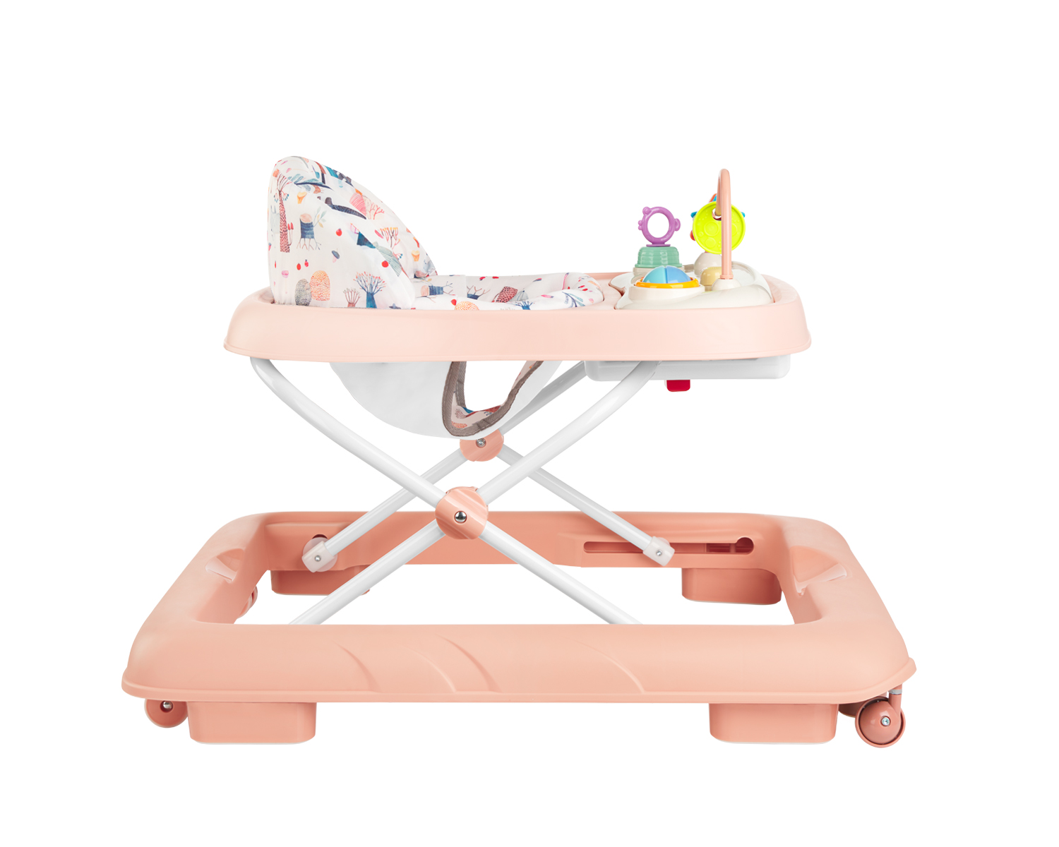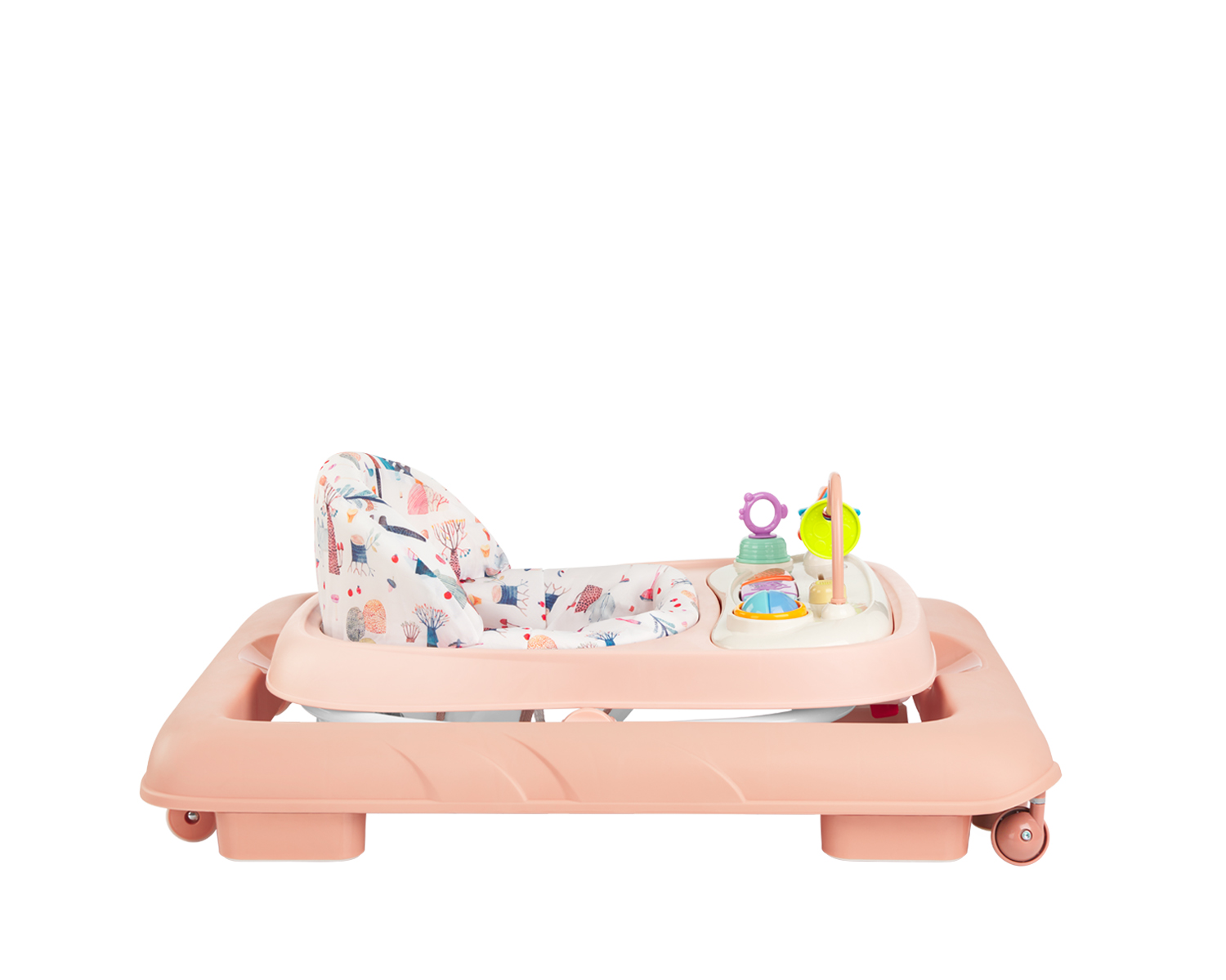 • Подходяща от 6 месеца до 12 кг;• Регулиране на височината в 3 позиции;• Свалящ се музикален панел със заключващи механизми под основата;• Бутон за включване и изключване;• Мека седалка с висока облегалка;• 2 предни РР универсални колела;• 2 задни TPR направляващи колела;• Защитен механизъм – 6 гумени стопери под основата;• Сгъваем дизайн;• Необходими са 2 батерии АА за музикалния панел (не са включени в комплекта). Размери: – Продукт: 67x60x53 см / 3.4 кг- Цветна кутия: 59×11.5×69.5 см / 4.5 кг / 1 бр/цветна кутия