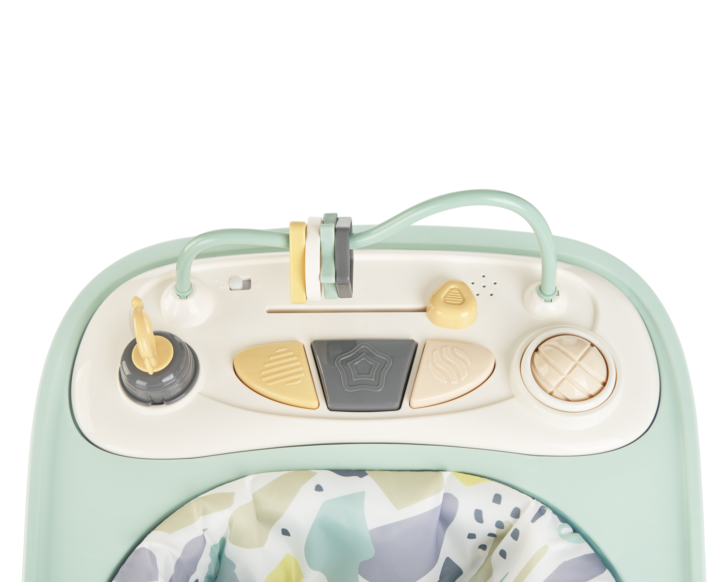 • Подходяща от 6 месеца до 12 кг;• Регулиране на височината в 3 позиции;• Свалящ се музикален панел със заключващи механизми под основата;• Бутон за включване и изключване;• Мека седалка с висока облегалка;• 2 предни РР универсални колела;• 2 задни TPR направляващи колела;• Защитен механизъм – 6 гумени стопери под основата;• Сгъваем дизайн;• Необходими са 2 батерии АА за музикалния панел (не са включени в комплекта). Размери: – Продукт: 67x60x53 см / 3.4 кг- Цветна кутия: 59×11.5×69.5 см / 4.5 кг / 1 бр/цветна кутия