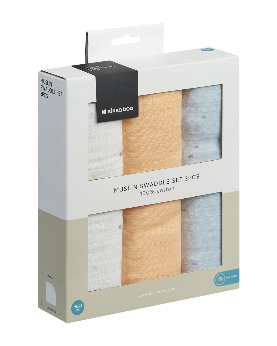 • Комплект от 3 броя меки и нежни муселинови пелени;• Висококачествена дишаща материя;• Подходящи при кърмене и повиване, след баня, по време на сън и разходка;• Дизайнерски принт в нежни цветове;• Състав: 100% памук;• Луксозна подаръчна кутия;• Размер: 75×75 см. Размери: – Подаръчна кутия: 21x18x5 см / 0.36 кг- Кашон: 61x46x48 см / 18.36 кг / 48 бр/кашон