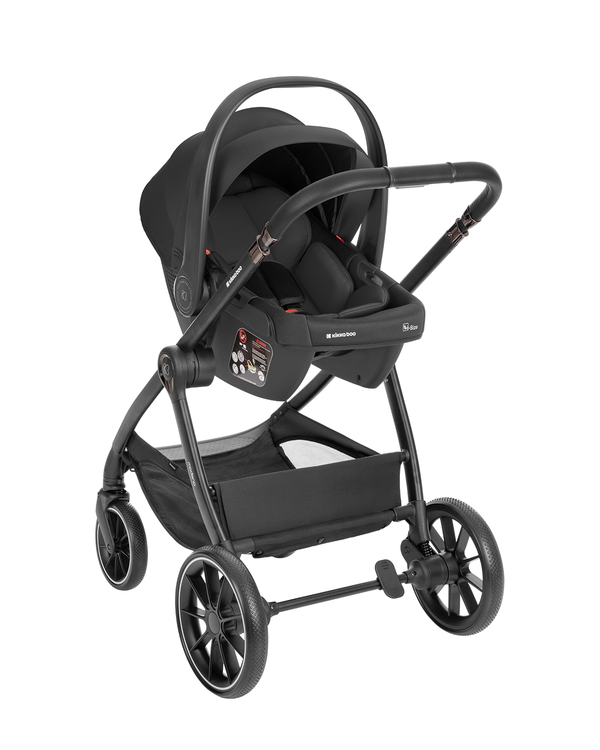 Количка:• Подходяща от раждането до 22 кг; • Лека алуминиева рамка със система за бързо и лесно сгъване; • Реверсивна седалка с мемори бутони за по-лесно освобождаване;• Регулируема кожена дръжка в 4 позиции;• Сенник с удължение, козирка и прозорец за наблюдение на детето;• Отстраняем кожен предпазен борд;• 5-точков предпазен колан с меки раменни подложки и покритие на долната катарама;• 360 градуса въртене на предните колела със заключващ механизъм;• Вградени амортисьори на колелата; • Задна спирачка с едно докосване; • Регулируем налкон на облегалката в 3 позиции;• Регулируема опора за крачета в 4 позиции; • Непромокаем плат с UPF50 +;• Тествано в съответствие с EN 1888-2:2018+A1:2022 от SGS Standards Technical Services. Кош за новородено:• Мек матрак;• Сенник с удължение, козирка и прозорец за наблюдение на детето;• Мрежа за по-добра вентилация;• Тествано в съответствие с EN 1466:2023 от SGS Standards Technical Services. Стол за кола:• i-SIZE (40-87 см);•Подходящо за използване в посока обратна на движението, от 40 до 87 см;• Регулируема ергономична дръжка за носене;• Регулируема облегалка за глава в 7 позиции;• Регулируем сенник;• Регулиране на височината на предпазните колани в 7 нива;• 3-точков предпазен колан с меки раменни подложки и покритие на долната катарама;• Регулиране на предпазните колани с една ръка; • Мека възглавница за поддръжка на цялото тяло;• Сваляща се и лесна за почистване тапицерия;• Тествано в съответствие с Регламент за изпитване ECE R129/03 от TÜV SÜD. Включени аксесоари: Покривало за крачета на седалката и коша за новородено, адаптори, чанта. Размери:- Количка: 99x59x103.5-109.5 см / Сгъната: 32x59x74 см / 10 кг – Кош за новородено: 82x39x63 см / 4.9 кг- Стол за кола: 69-70×35.5×58 см / 3.6 кг- Кашон: 82×52×55 см / 21 кг / 1 сет/кашон
