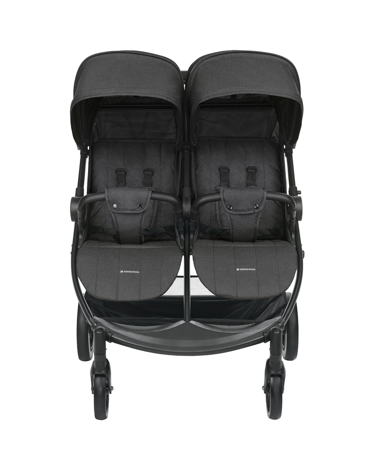 • Подходяща до 15 кг на дете;• Лека алуминиева рамка; • Система за бързо и лесно сгъване със седалката и заключващ механизъм;• Голяма единична дръжка, която позволява лесно управление на количката;• Два отделни сенника с удължение и прозорци за наблюдение на детето;• Два отстраняеми текстилни предпазни борда; • Кош за съхранение на багаж; • 5-точков предпазен колан с меки раменни подложки и покритие на долната катарама;• 360 градуса въртене на предните колела със заключващ механизъм;• Големи колела, подходящи за всякакви терени; • Вградени амортисьори на предните колела; • Задна спирачка с едно докосване;• Индивидуално регулируема позиция на всяко от гръбчетата;• Индивидуално регулируема опора на крачетата в 3 позиции;• Тествано в съответствие с EN 1888-2:2018+A1:2022 от SGS Standards Technical Services. Включени аксесоари: Покривала за крачетата на двете седалки, дъждобран. Размери: – Количка: 74x75x100 см / Сгъната: 40x75x73 см / 13.8 кг- Кашон: 76.5x22x74 см / 16.1 кг / 1 бр/кашон