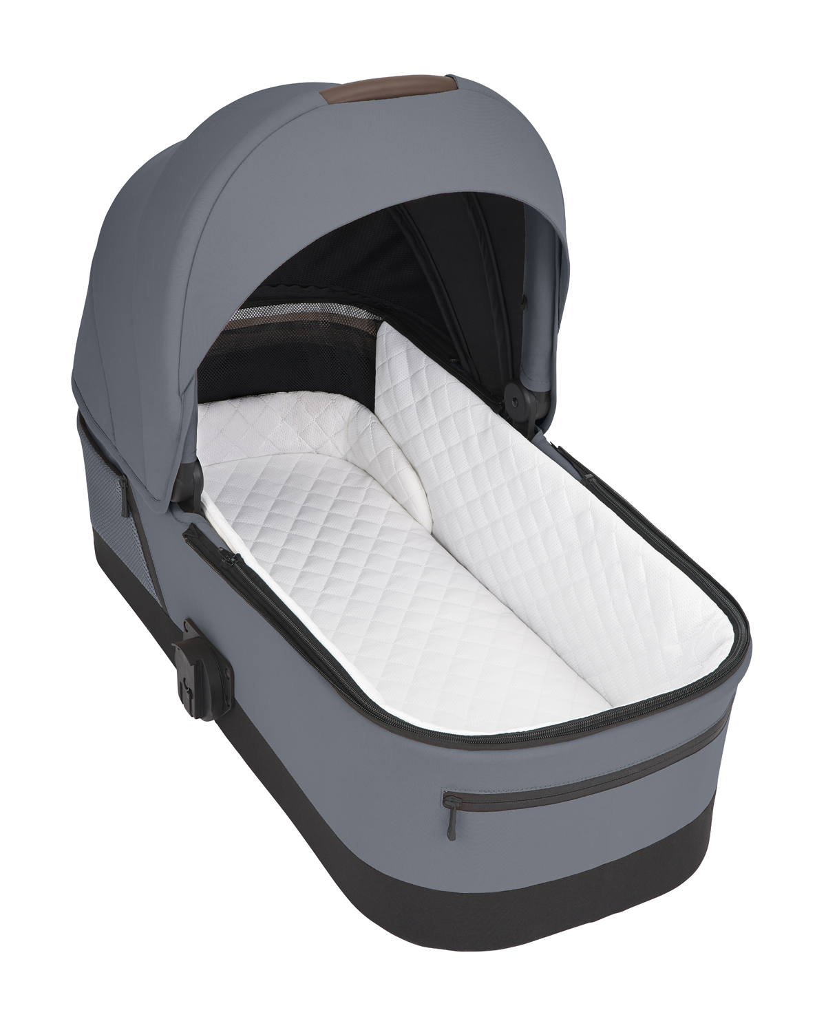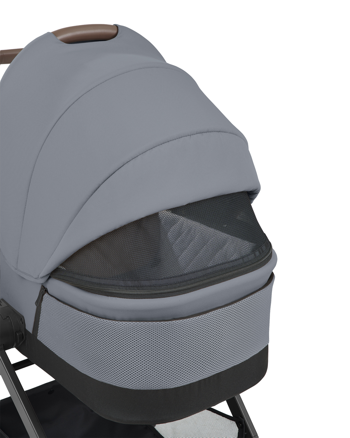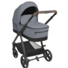 Количка:• Подходяща от раждането до 22 кг;• Лека алуминиева рамка;• Система за бързо и лесно сгъване;• Реверсивна седалка с мемори бутони за по-лесно освобождаване;• Регулируема кожена дръжка в 3 позиции;• Сенник с удължение, козирка и прозорец за наблюдение на детето;• Мрежест гръб на седалката за по-добра вентилация;• Отстраняем кожен предпазен борд;• 5-точков предпазен колан с меки раменни подложки и покритие на долната катарама;• 360 градуса въртене на предните колела със заключващ механизъм;• Вградени амортисьори на колелата;• Задна спирачка с едно докосване;• Регулируем налкон на облегалката в 3 позиции;• Регулируема опора за крачета в 6 позиции;• Непромокаем плат с UPF50+;• Тествано в съответствие с EN 1888-2:2018+A1:2022 от Intertek Testing Services. Кош за новородено:• Мек матрак;• Сенник с удължение, козирка и прозорец за наблюдение на детето;• Мрежа за по-добра вентилация;• Тествано в съответствие с EN 1466:2023 от Intertek Testing Services. Стол за кола:• i-SIZE (40-87 см);•Подходящо за използване в посока обратна на движението, от 40 до 87 см;• Регулируема ергономична дръжка за носене;• Регулируема облегалка за глава в 7 позиции;• Регулируем сенник;• Регулиране на височината на предпазните колани в 7 нива;• 3-точков предпазен колан с меки раменни подложки и покритие на долната катарама;• Регулиране на предпазните колани с една ръка;• Мека възглавница за поддръжка на цялото тяло;• Сваляща се и лесна за почистване тапицерия;• Тествано в съответствие с UN Regulation No. R129/03 от TÜV SÜD. Включени аксесоари: Покривало за крачета на коша за новородено, адаптори, чанта. Размери:- Количка: 72.5×53.5×92-99.5 см / Сгъната: 37×53.5×62 см / 8.3 кг- Кош за новородено: 80x40x62 см / 5 кг- Стол за кола: 69x43x59 см / 3.6 кг- Кашон: 82×49×48 см / 18.5 кг / 1 сет/кашон