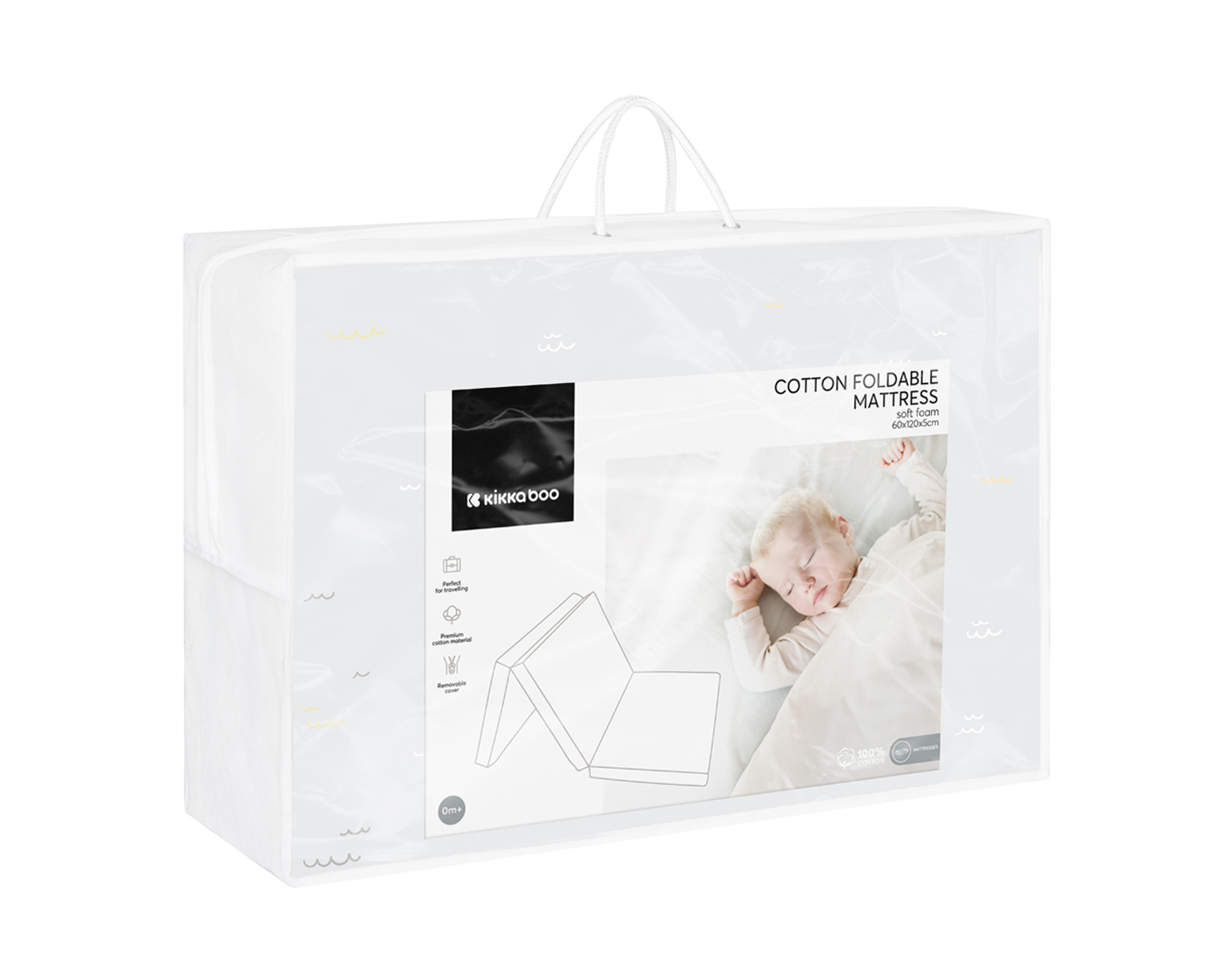 • Меко и хипоалергично матраче за бебе;• Изработено от висококачествена памучна материя;• Плътен пълнеж от мека пяна за перфектна адаптация към тялото на бебето;• Сгъваем дизайн, идеален за път;• Сваляем калъф с цип за лесно пране и поддръжка;• Внимателно подбрани материали за спокоен сън и максимален комфорт;• Закачлив дизайнерски принт;• Калъф: 100% памук;• Пълнеж: 100% полиуретанова пяна;• Предлага се в предпазваща от праха чанта, подходяща както за пренасяне, така и за съхранение. Размери:- Продукт: 60x120x5 см- Опаковка: 40x60x18 см / 1.08 кг- Кашон: 90x85x62 см / 13.7 кг / 10 бр/кашон
