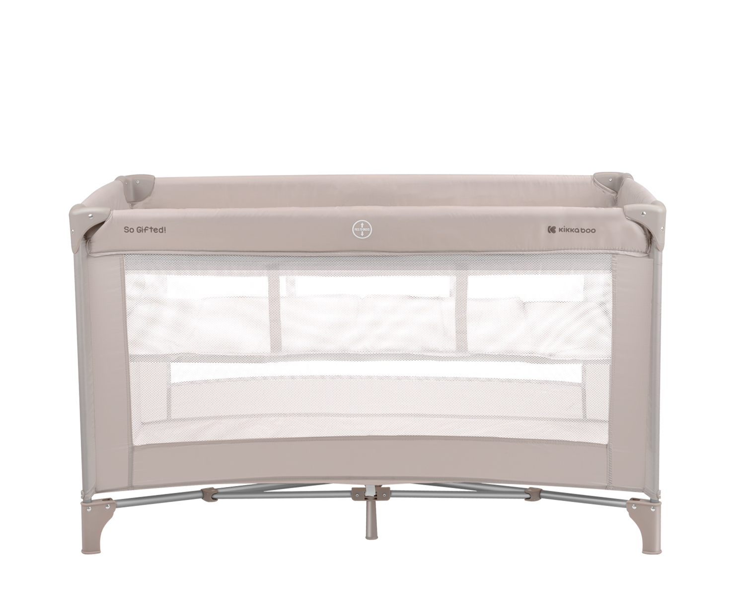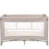 Второ ниво:• Подходящо за деца до 6 месеца, с тегло до 9кг; Първо ниво: • Подходящо за деца от 6 до 36 месеца, с тегло до 15кг; • 2 нива за спане, второто се премахва с цип;• Мрежести части от двете страни за по-добра вентилация;• Страничен отвор с цип;• Мека Подложка; • Закачлив дизайн;• Компактна в сгънато положение;• Чанта за пренасяне. Размери:- Продукт: 69x127x75.5 см / 8.7 кг- Кашон: 77.7x21x21 см / 9.2 кг