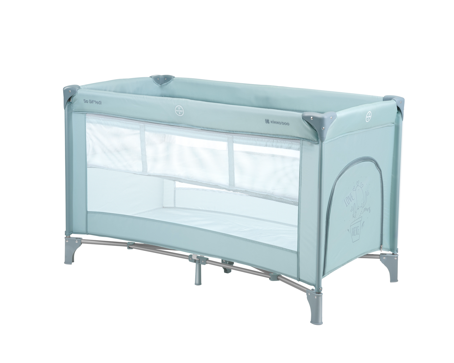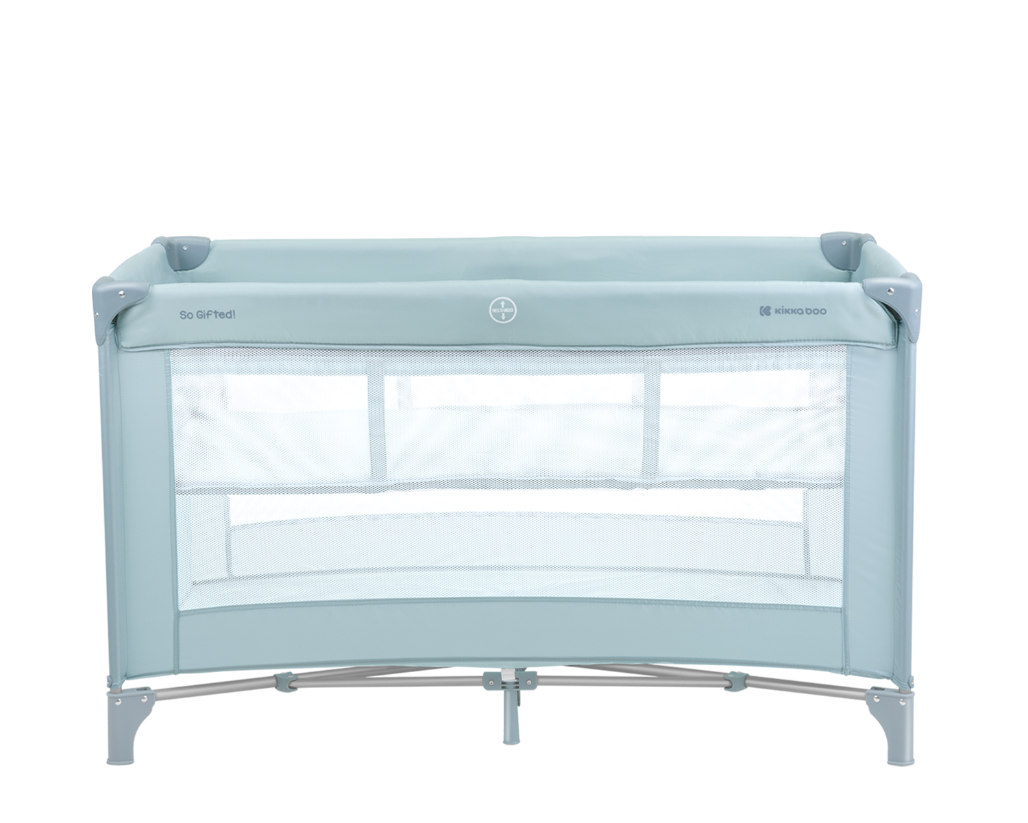 Второ ниво:• Подходящо за деца до 6 месеца, с тегло до 9кг; Първо ниво: • Подходящо за деца от 6 до 36 месеца, с тегло до 15кг; • 2 нива за спане, второто се премахва с цип;• Мрежести части от двете страни за по-добра вентилация;• Страничен отвор с цип;• Мека Подложка; • Закачлив дизайн;• Компактна в сгънато положение;• Чанта за пренасяне. Размери:- Продукт: 69x127x75.5 см / 8.7 кг- Кашон: 77.7x21x21 см / 9.2 кг