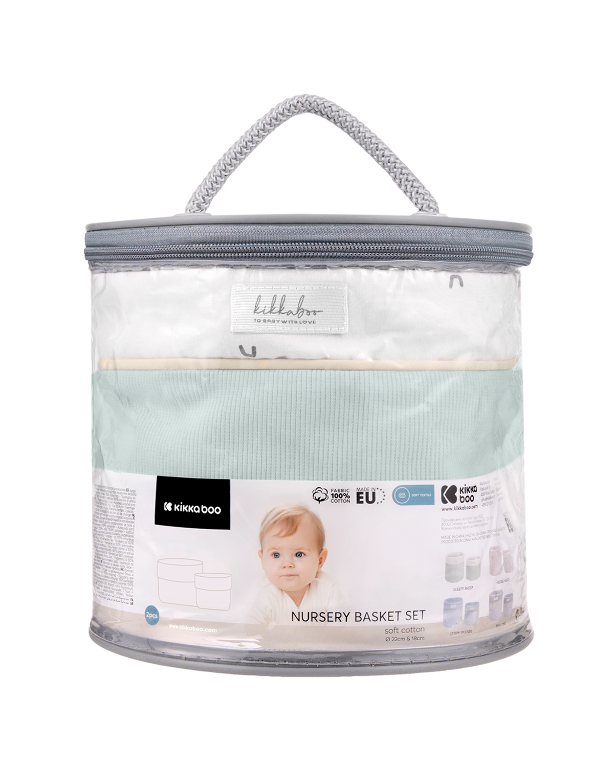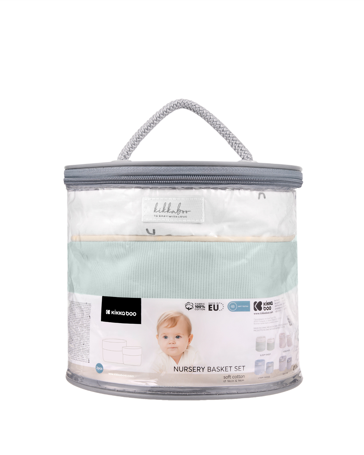 • Комплект от 2 броя кош за бебешки аксесоари, изработен от висококачествени памучни материи;• Пълнеж: 100% полиестер;• Осигурява лесен достъп до принадлежностите за повиване и баня;• Стилен дизайн със закачлив десен в нежни цветове;• Включва голям кош 22х22 см и малък 18х18 см;• Предлага се в прахоусойчива чанта за лесно пренасяне и съхранение;• Произведено в България. Размери:- Продукт: 21х22х22 см / 0.23 кг- Кашон: 82х45х70 см / 6.79 кг / 21 бр/кашон