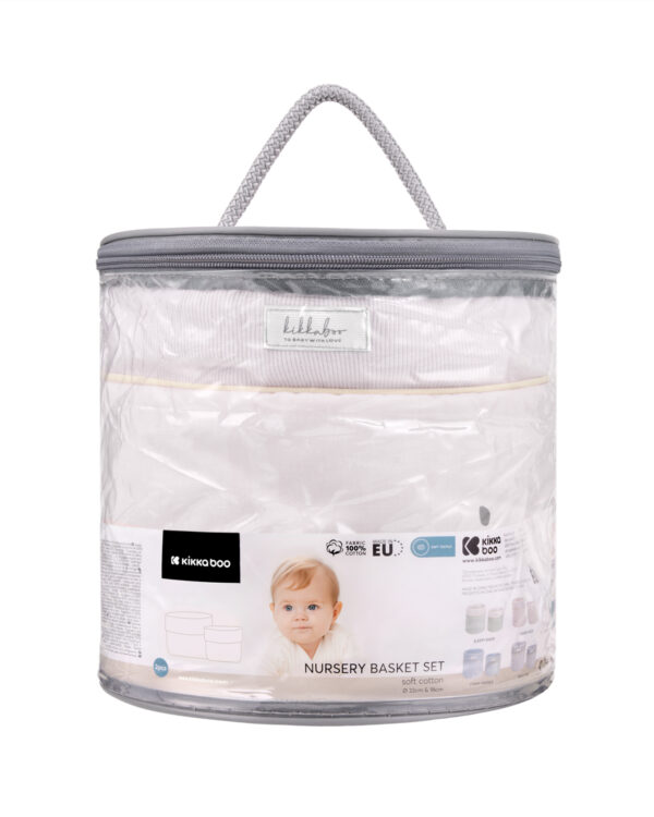 • Комплект от 2 броя кош за бебешки аксесоари, изработен от висококачествени памучни материи;• Пълнеж: 100% полиестер;• Осигурява лесен достъп до принадлежностите за повиване и баня;• Стилен дизайн със закачлив десен в нежни цветове;• Включва голям кош 22х22 см и малък 18х18 см;• Предлага се в прахоусойчива чанта за лесно пренасяне и съхранение;• Произведено в България. Размери:- Продукт: 21х22х22 см / 0.23 кг- Кашон: 82х45х70 см / 6.79 кг / 21 бр/кашон