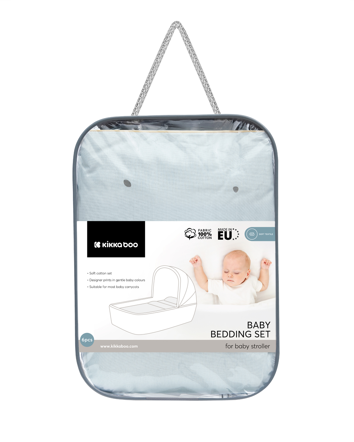 • Мек и нежен бебешки спален комплект, изработен от 100% висококачествен памук ранфорс;• Сертифицирани по OEKO-TEX материи;• Закачлив дизайнерски десен в нежни цветове и луксозна бродерия;• Подходящ за стандартно кошче за новородено;• Комплектът включва:- Калъфка 35×26 см със странично отваряне тип плик;- Мека памучна възглавница 35×26 см;- Долен чаршаф с ластик 40x80x5 см;- Плик за олекотена завивка с цип 80×60 см;- Мека и топла олекотена завивка 80×60 см, изработена от пухкава полиестерна вата и нетъкан текстил;- Непромокаем протектор за матрак на кошче с лесно ластично закрепяне 38х78 см;• Предлага се в прахоустойчива чанта за лесно пренасяне и съхранение;• Произведено в България. Размери:- Прахоустойчива чанта: 34x24x8 см / 0.59 кг- Кашон: 82x45x70 см / 23.2 кг / 36 бр/кашон