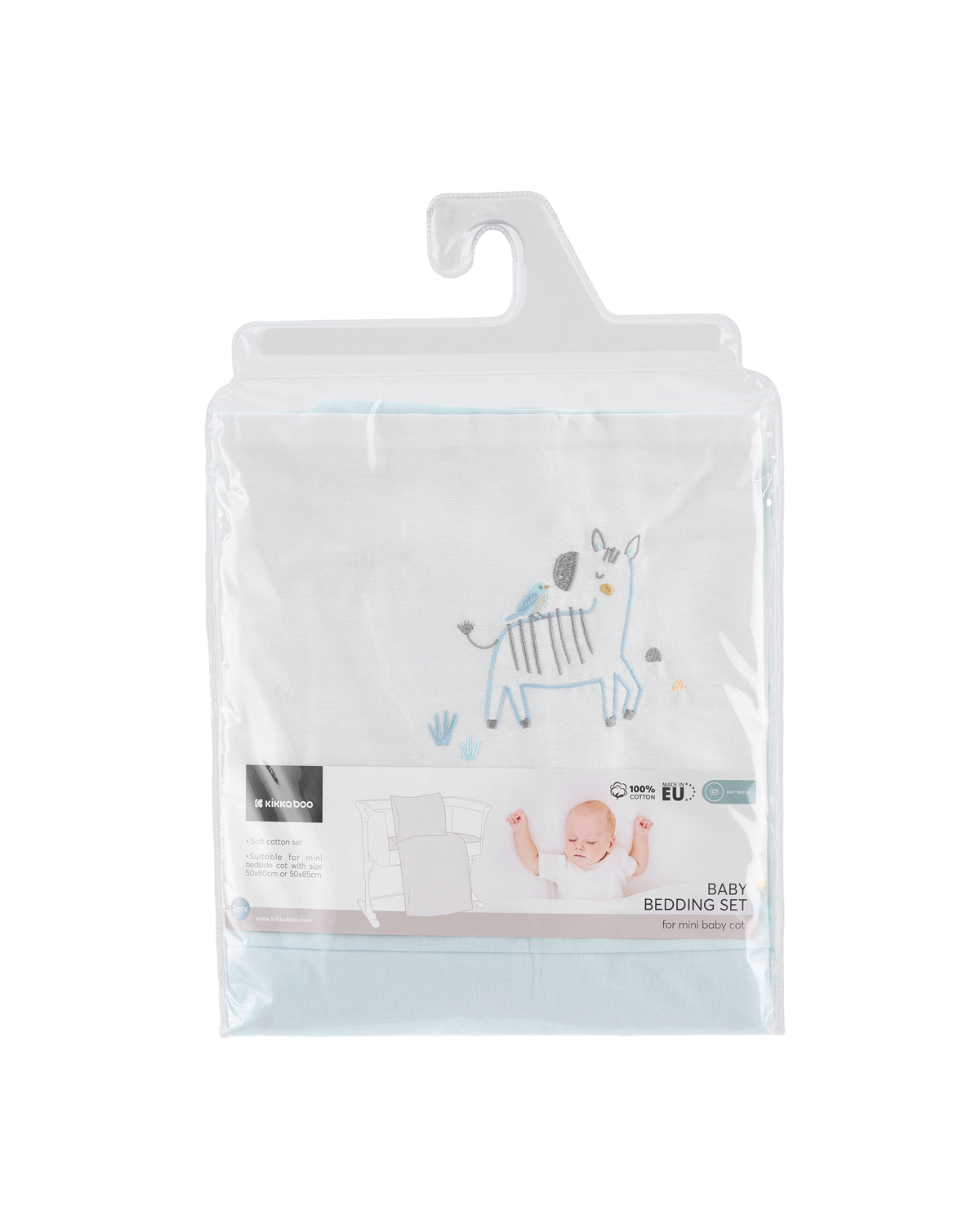 • Мек и нежен бебешки спален комплект, изработен от 100% висококачествен памук ранфорс;• Сертифицирани по OEKO-TEX материи;• Закачлив дизайнерски принт и цветна бродерия;• Подходящ за бебешки мини кошари 50×85 см и 50х80 см;• Произведено в България;• Включва:- Калъфка – 35х45 см;- Долен чаршаф с ластик – 50х80х8 см;- Плик – 55х85 см. Размери:- Прахоустойчива опаковка: 25х34х3 см / 0.32 кг- Кашон: 60x40x30 см / 8.91 кг / 25 бр/кашон