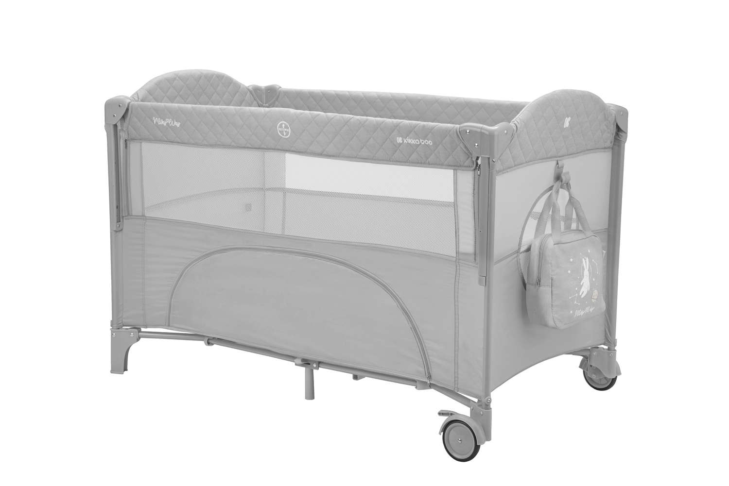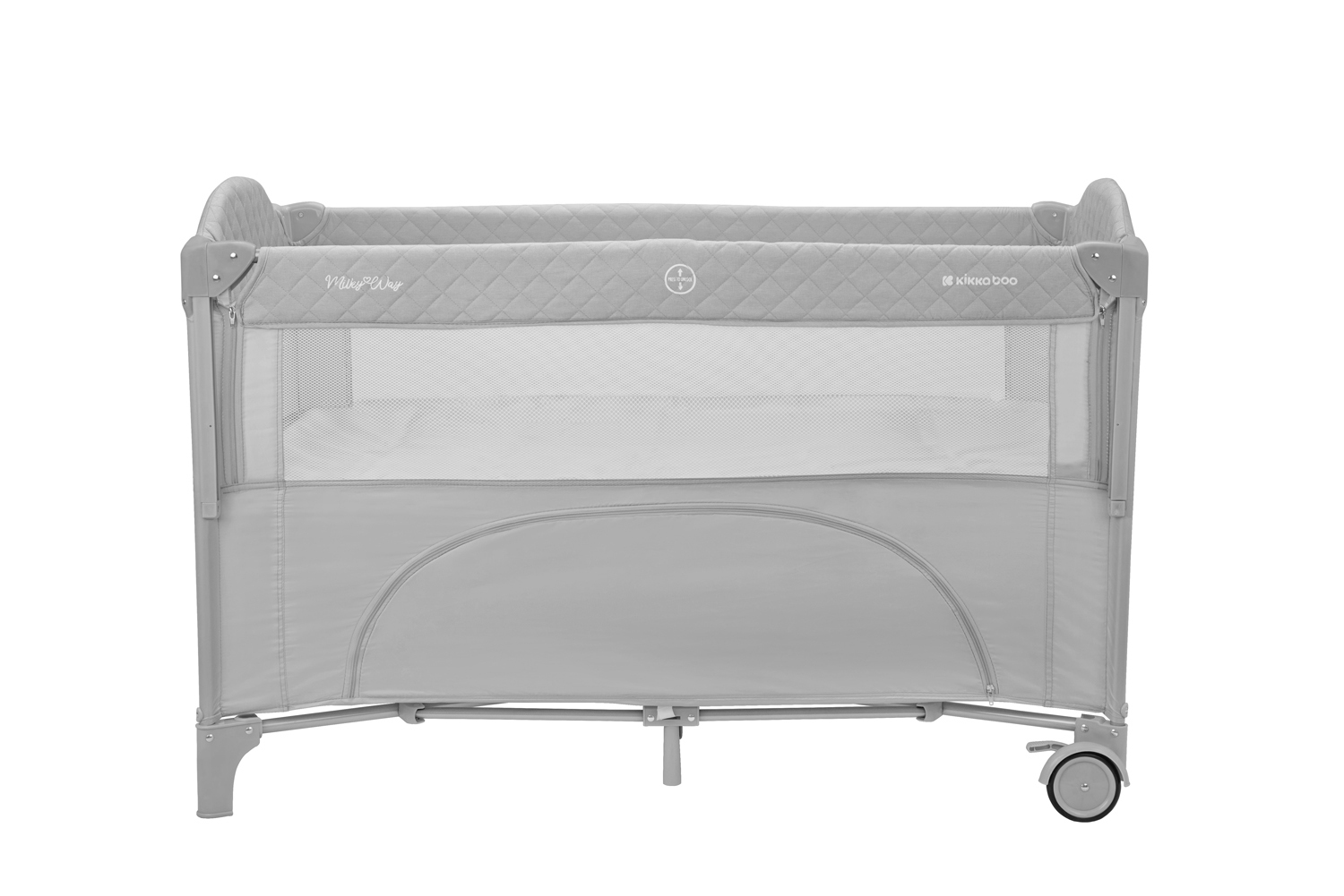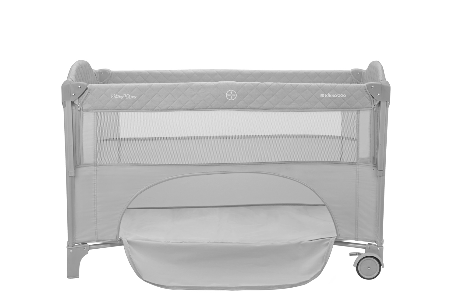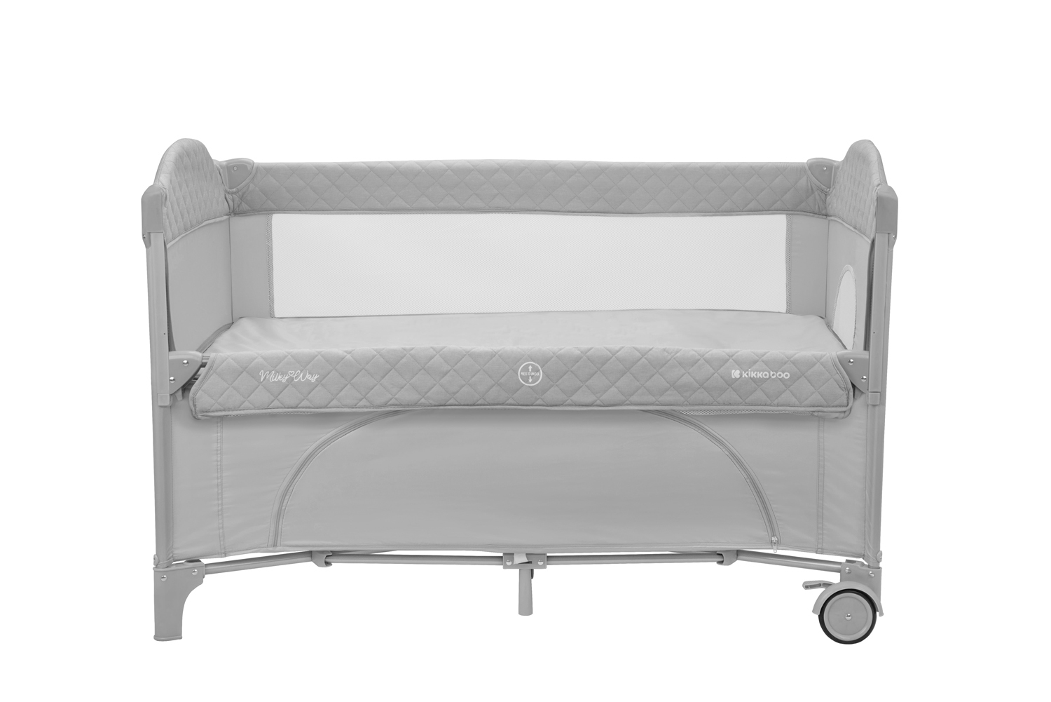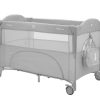 Второ ниво:• Подходящо от раждане до 6 месеца, с тегло до 9кг; Първо ниво: • Подходящо за деца от 6 до 36 месеца, с тегло до 15кг; • Падаща страница;• Мрежести части за по-добра вентилация;• Допълнителна лента за фиксиране на кошарата към леглото на родителите;• Преден отвор с цип;• Мека подложка; • 2 колела със спирачки за лесно преместване;• Чанта за принадлежности. Размери:- Продукт: 71x125x84 см / 8.8 кг- Кашон: 77.7x21x21 см / 9.1 кг / 1 бр/кашон