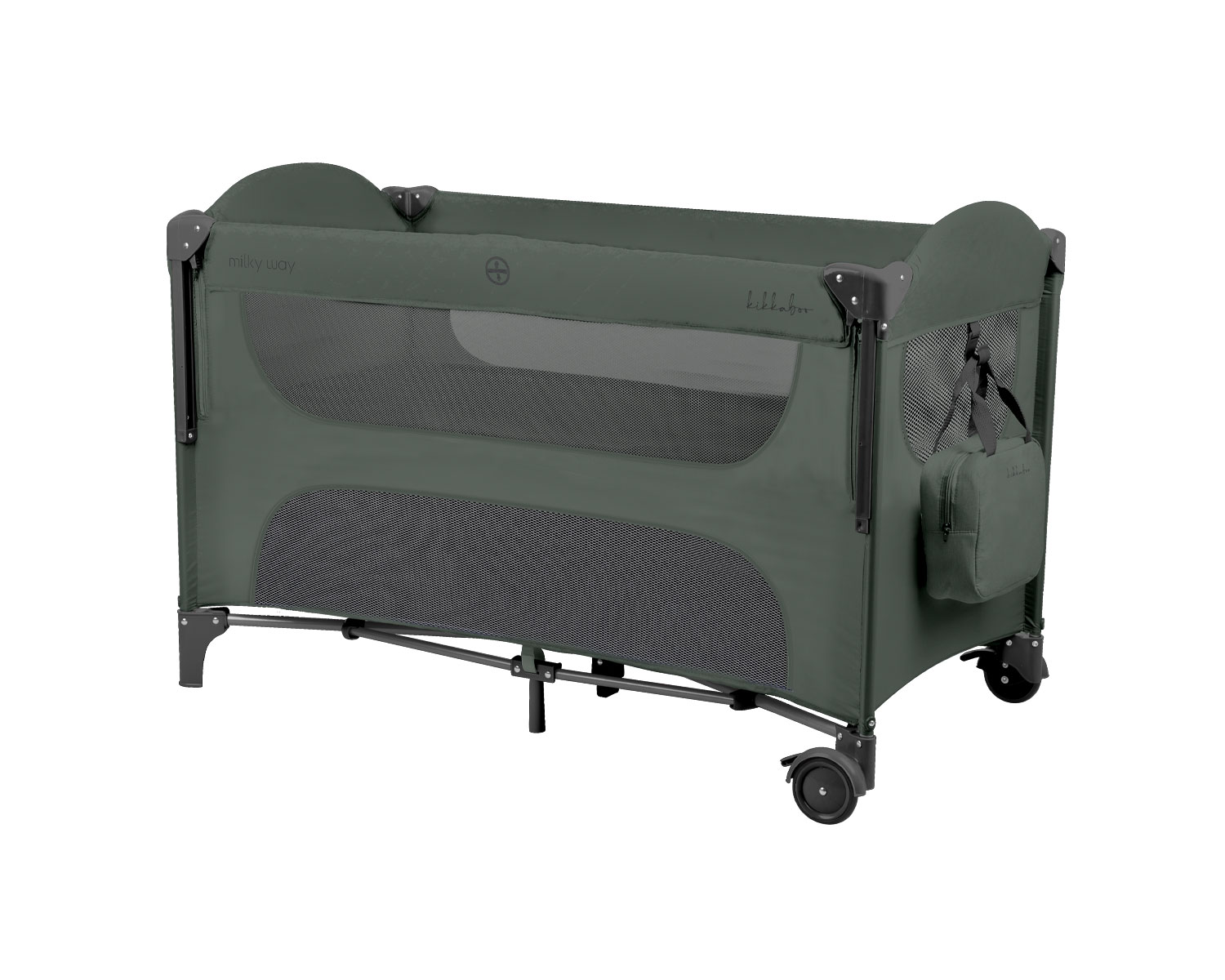 Второ ниво:• Подходящо от раждане до 6 месеца, с тегло до 9кг; Първо ниво: • Подходящо за деца от 6 до 36 месеца, с тегло до 15кг; • Падаща страница;• Мрежести части за по-добра вентилация;• Допълнителна лента за фиксиране на кошарата към леглото на родителите;• Страничен отвор с цип;• Мека подложка; • 2 колела със спирачки за лесно преместване;• Чанта за принадлежности;• Чанта за пренасяне. Размери:- Продукт: 65x125x77 см / 8.8 кг- Кашон: 78×21.1×21.1 см / 9.25 кг / 1 бр/кашон