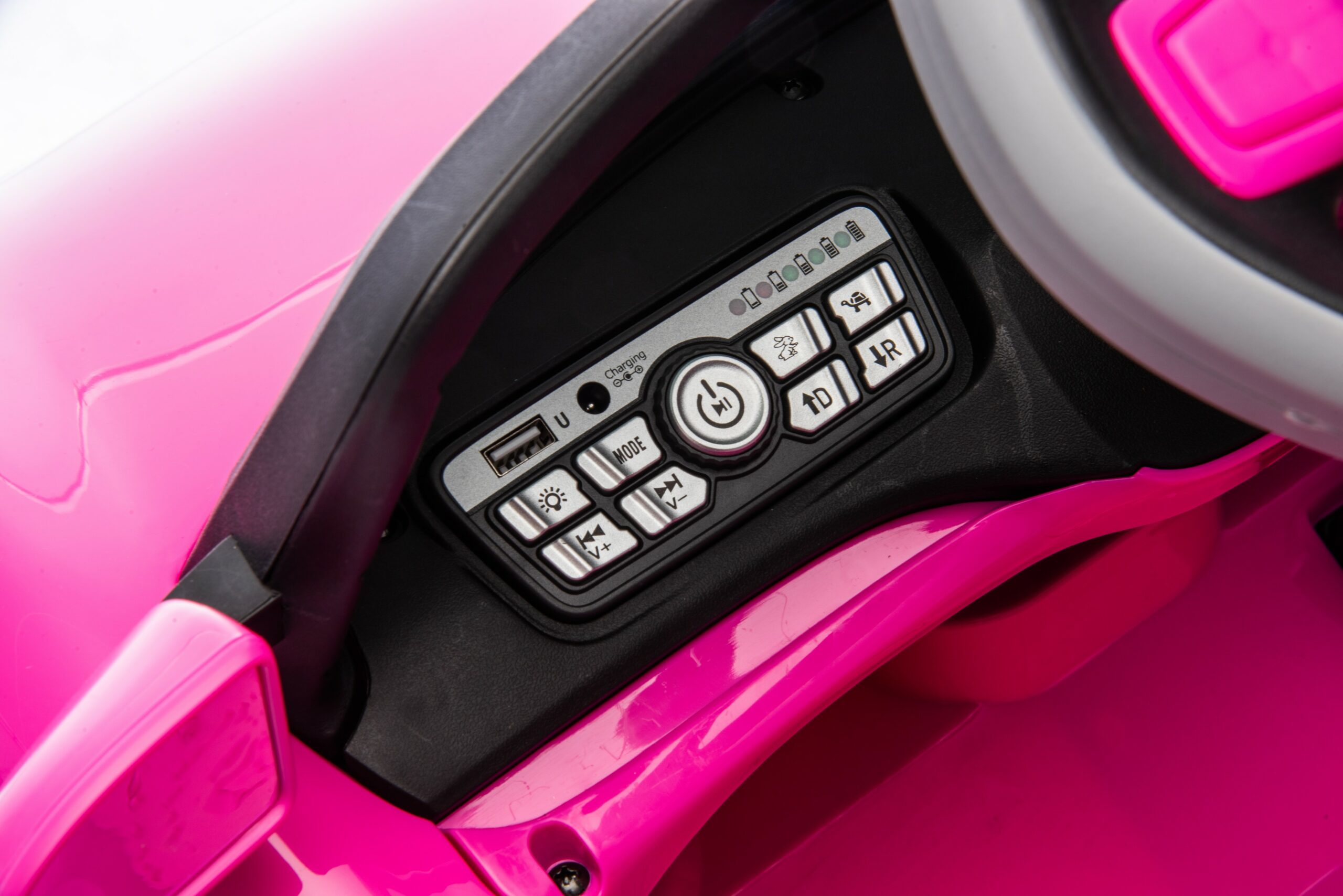 • Батерия 12V4.5AH1;• Мотор 25W2;• Дистанционно управление – 2.4G;• Кожена седалка;• EVA Гуми;• Индикатор за захранване;• Музика и спортен звук на двигател;• USB / MP3;• LED светлини;• Амортисьори на четирите колела. Размери:- Продукт: 98×56.5×47 см / 11 кг- Кашон: 100×51.5×26 см / 13.5 кг- CBM: 0.134