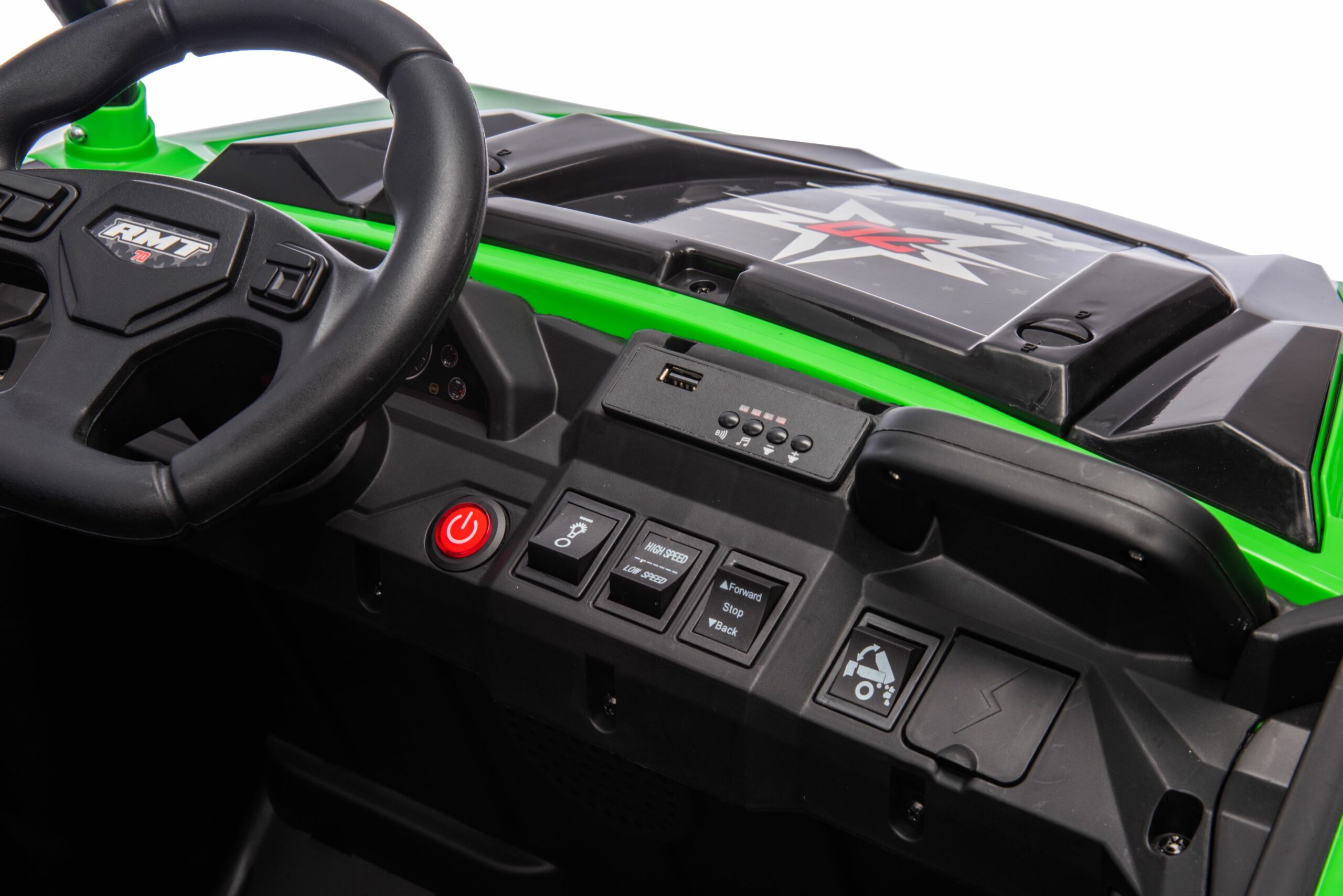 • Батерия 24V7AH*1;• Мотор 550#*4;• Дистанционно управление – 2.4G;• Кожена седалка;• EVA Гуми; • Предна светлина;• Музика, USB вход, Bluetooth;• Аларма за изтощена батерия;• Амортисьори;• Електрическа повдигаща кофа. Размери:- Продукт: 163x75x71 см / 36 кг- Кутия: 157×64.5×39 см / 39 кг- CBM: 0.395- Максимално натоварване: 60 кг
