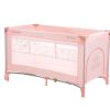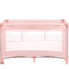 Второ ниво:• Подходящо за деца до 6 месеца, с тегло до 9кг;Първо ниво:• Подходящо за деца от 6 до 36 месеца, с тегло до 15кг; • 2 нива за спане, второто се премахва с цип;• Гриф с играчки;• Мрежести части за по-добра вентилация;• Страничен отвор с цип;• Мека подложка;• Подвижна подложка за повиване;• 2 колела за лесно преместване;• Закачлив дизайн;• Компактна в сгънато положение;• Чанта за пренасяне. Размери:- Продукт: 69.5x125x77-105 см / 9.2 кг- Кашон: 77.7×22.5×22 см / 10.3 кг / 1 бр/кашон