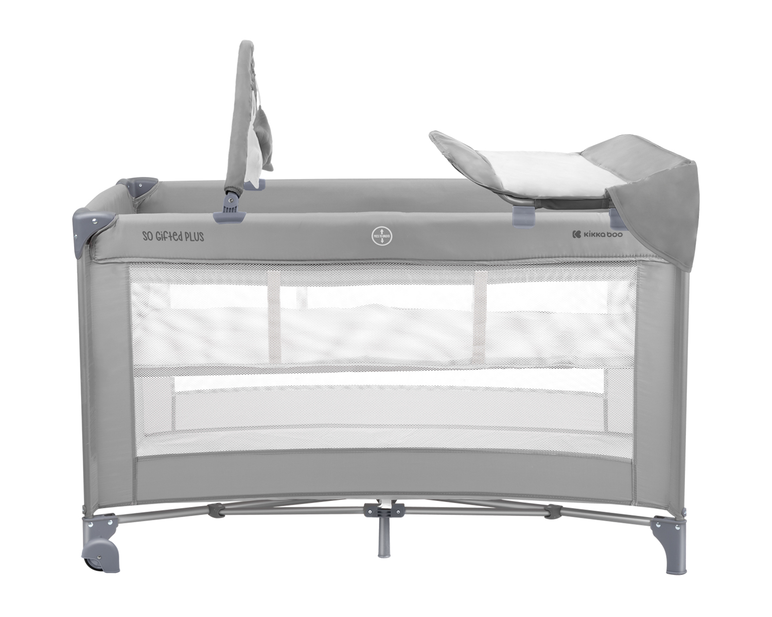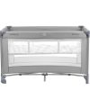 Второ ниво:• Подходящо за деца до 6 месеца, с тегло до 9кг;Първо ниво:• Подходящо за деца от 6 до 36 месеца, с тегло до 15кг; • 2 нива за спане, второто се премахва с цип;• Гриф с играчки;• Мрежести части за по-добра вентилация;• Страничен отвор с цип;• Мека подложка;• Подвижна подложка за повиване;• 2 колела за лесно преместване;• Закачлив дизайн;• Компактна в сгънато положение;• Чанта за пренасяне. Размери:- Продукт: 69.5x125x77-105 см / 9.2 кг- Кашон: 77.7×22.5×22 см / 10.3 кг / 1 бр/кашон