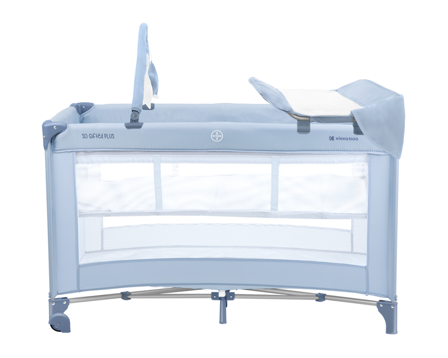 Второ ниво:• Подходящо за деца до 6 месеца, с тегло до 9кг;Първо ниво:• Подходящо за деца от 6 до 36 месеца, с тегло до 15кг; • 2 нива за спане, второто се премахва с цип;• Гриф с играчки;• Мрежести части за по-добра вентилация;• Страничен отвор с цип;• Мека подложка;• Подвижна подложка за повиване;• 2 колела за лесно преместване;• Закачлив дизайн;• Компактна в сгънато положение;• Чанта за пренасяне. Размери:- Продукт: 69.5x125x77-105 см / 9.2 кг- Кашон: 77.7×22.5×22 см / 10.3 кг / 1 бр/кашон