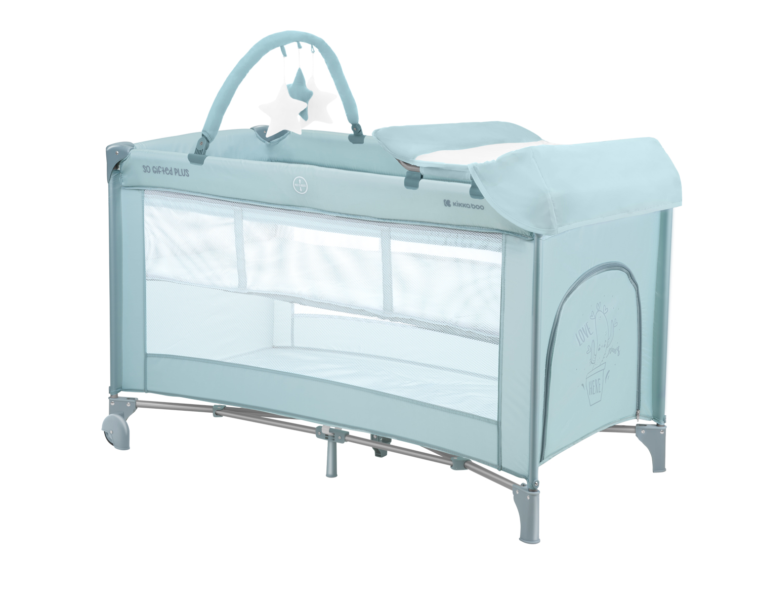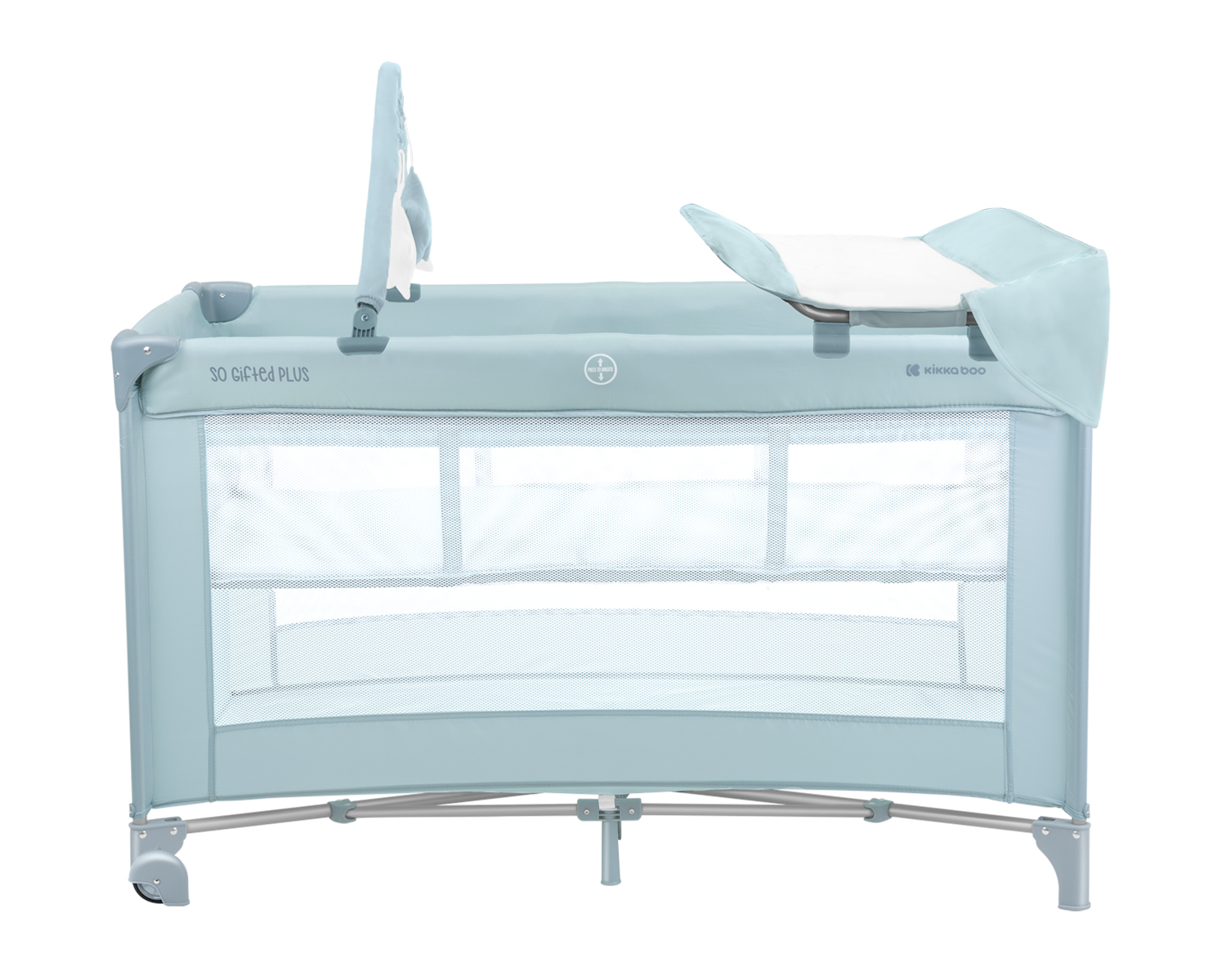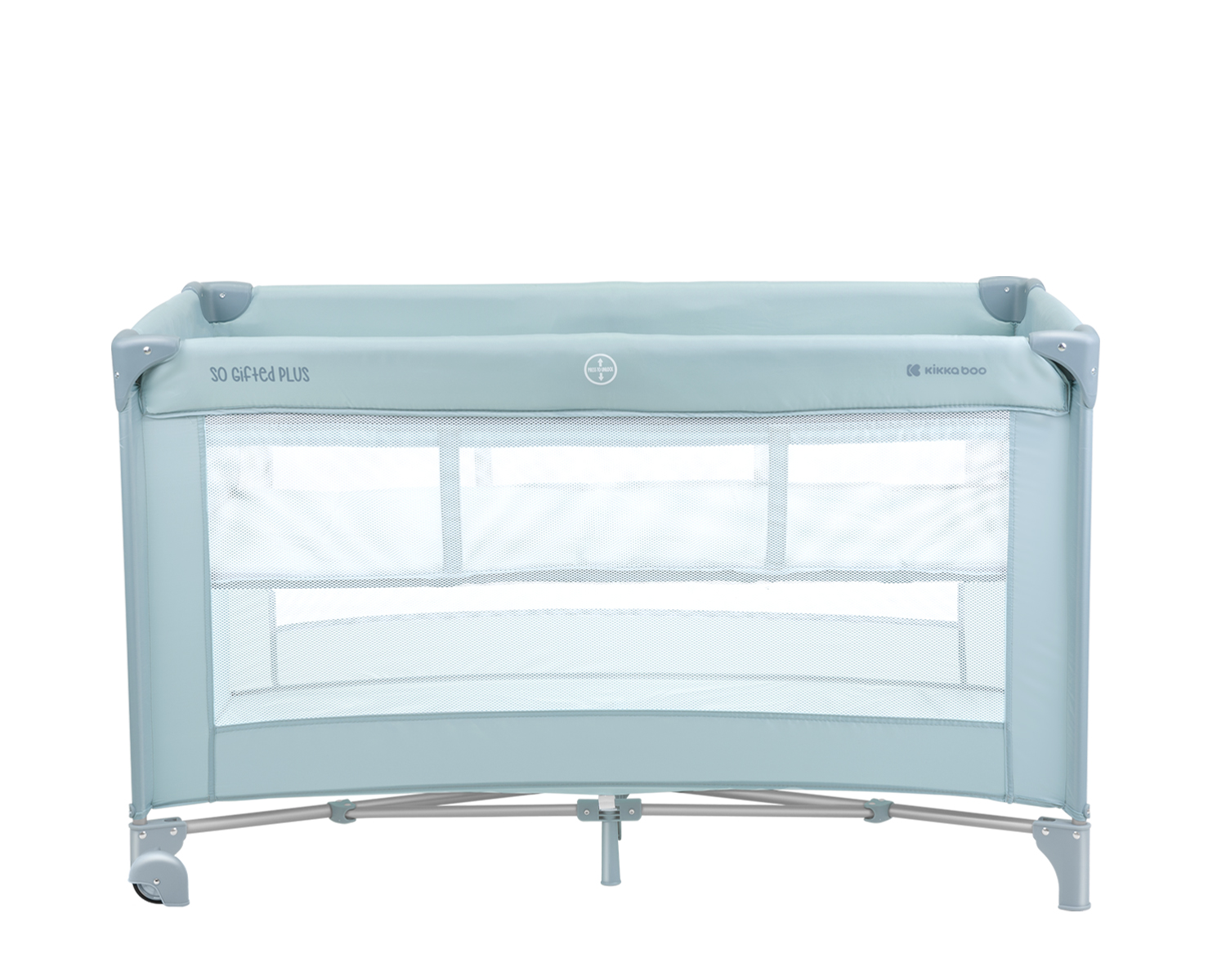 Второ ниво:• Подходящо за деца до 6 месеца, с тегло до 9кг;Първо ниво:• Подходящо за деца от 6 до 36 месеца, с тегло до 15кг; • 2 нива за спане, второто се премахва с цип;• Гриф с играчки;• Мрежести части за по-добра вентилация;• Страничен отвор с цип;• Мека подложка;• Подвижна подложка за повиване;• 2 колела за лесно преместване;• Закачлив дизайн;• Компактна в сгънато положение;• Чанта за пренасяне. Размери:- Продукт: 69.5x125x77-105 см / 9.2 кг- Кашон: 77.7×22.5×22 см / 10.3 кг / 1 бр/кашон