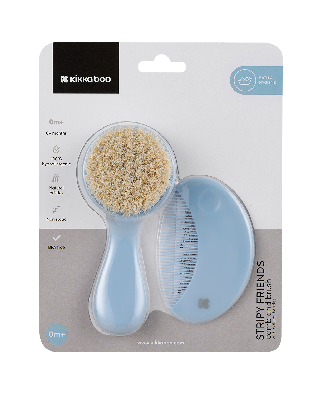 • Комплект гребен и четка, подходящи за ежедневна грижа;• Четка с естествен косъм;• Подходящ за деца от 0+ месеца;• Без BPA. Размери:- Четка: 6.5×3.5×14.2 см / Гребен: 6.5×0.8×10 см / 0.07 кг- Опаковка: 2×16.7×21.9 см / 0.10 кг- Вътрешен кашон: 33x27x11.5 см / 1.1 кг / 12 бр/вътрешен кашон- Кашон: 56×34.5×37.5 см / 7.1 кг / 72 бр/кашон