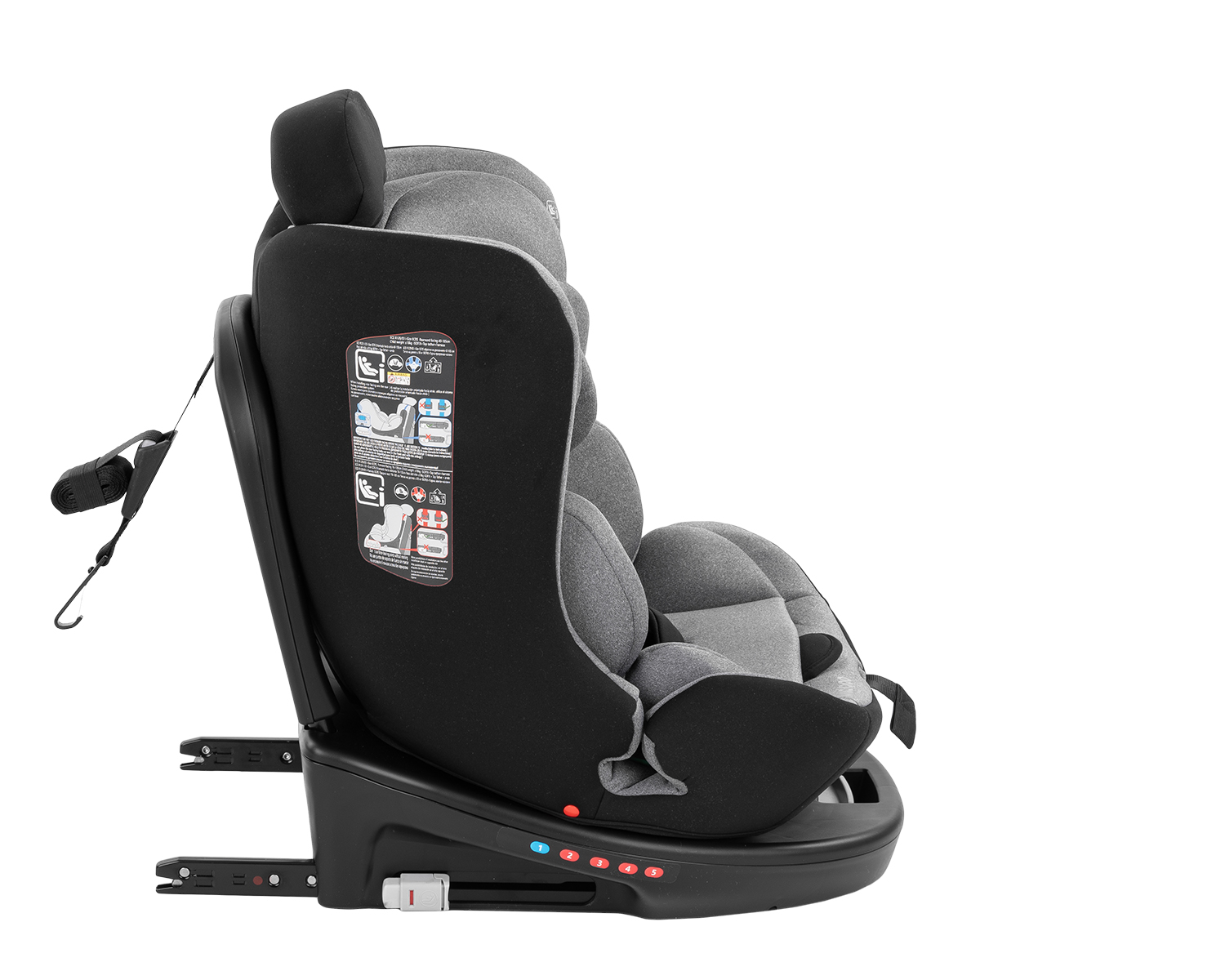 • i-SIZE (40-150 см); • Столчето e подходящо за използване в посока обратна на движението, от 40 до 105 см;• Столчето може да се използва по посока на движението от 76 до 150 см;• Регулируеми нива на гръбчетo в 4 позиции;• 360 градуса въртене на седалката;• ISOFIX система за допълнителна сигурност и лесно захващане към автомобила;• Top tether (горна лента) за допълнитена сигурност;• Борд против преобръщане;• Регулируема облегалка за глава във височина в 13 позиции;• 5-точков предпазен колан с меки раменни подложки и покритие на долната катарама; • Регулатор на коланите; • Мека и удобна възглавничка за по-голям комфорт; • Меки тъкани, които допринасят за по-голям комфорт на вашето дете. Тествано в съответствие с Регламент за изпитване ECE R129/03 от TÜV SÜD. Размери:- Продукт: 48x46x56-81 см / 12.6 кг- Кашон: 58x47x56 см / 14 кг / 1 бр/кашон