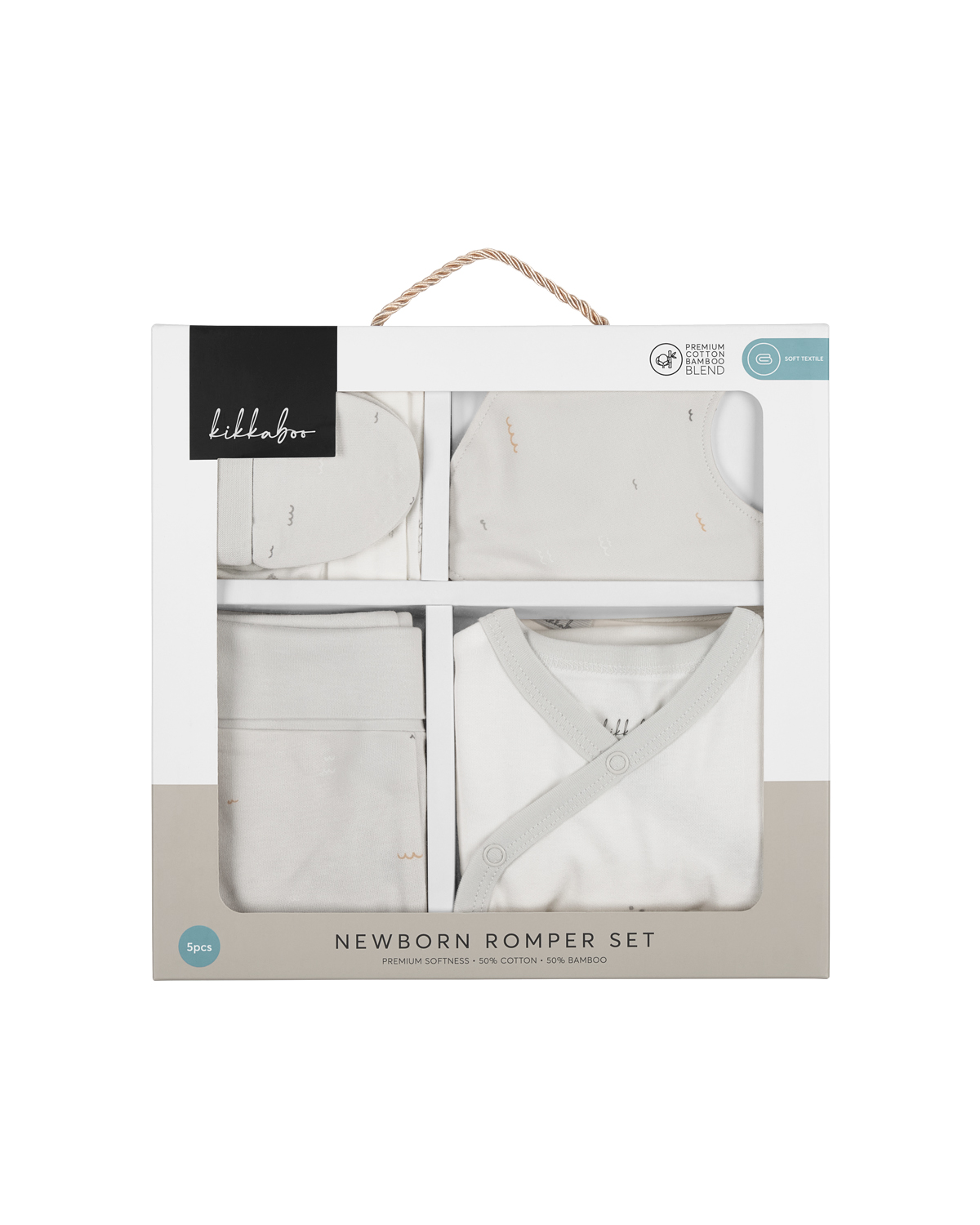 • Мек и нежен комплект за изписване на новородено, изработен от премиум интерлок трико;• Включва необходими дрешки за първите дни на бебето: ританки, боди с дълъг ръкав, шапка, ръкавички, лигавник;• Дизайнерски принтове в нежни цветове и закачливи детайли; • Лесно закопчаване с тик-так копчета;• Подходящ за бебета 0-3 месеца;• Състав: 50% памук, 50% бамбук;• Луксозна подаръчна кутия. Размери:- Подаръчна кутия: 27x26x3 см / 0.325 кг- Кашон: 57x29x35 см / 10.73 кг / 20 бр/кашон