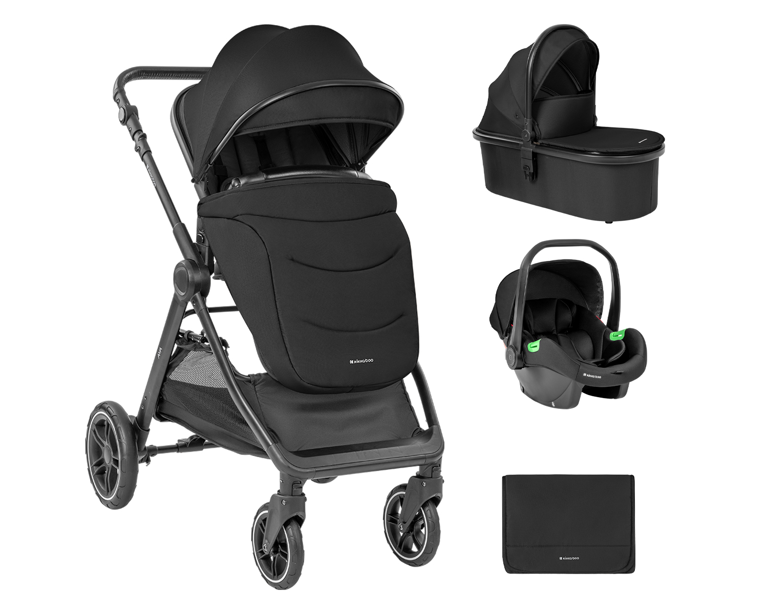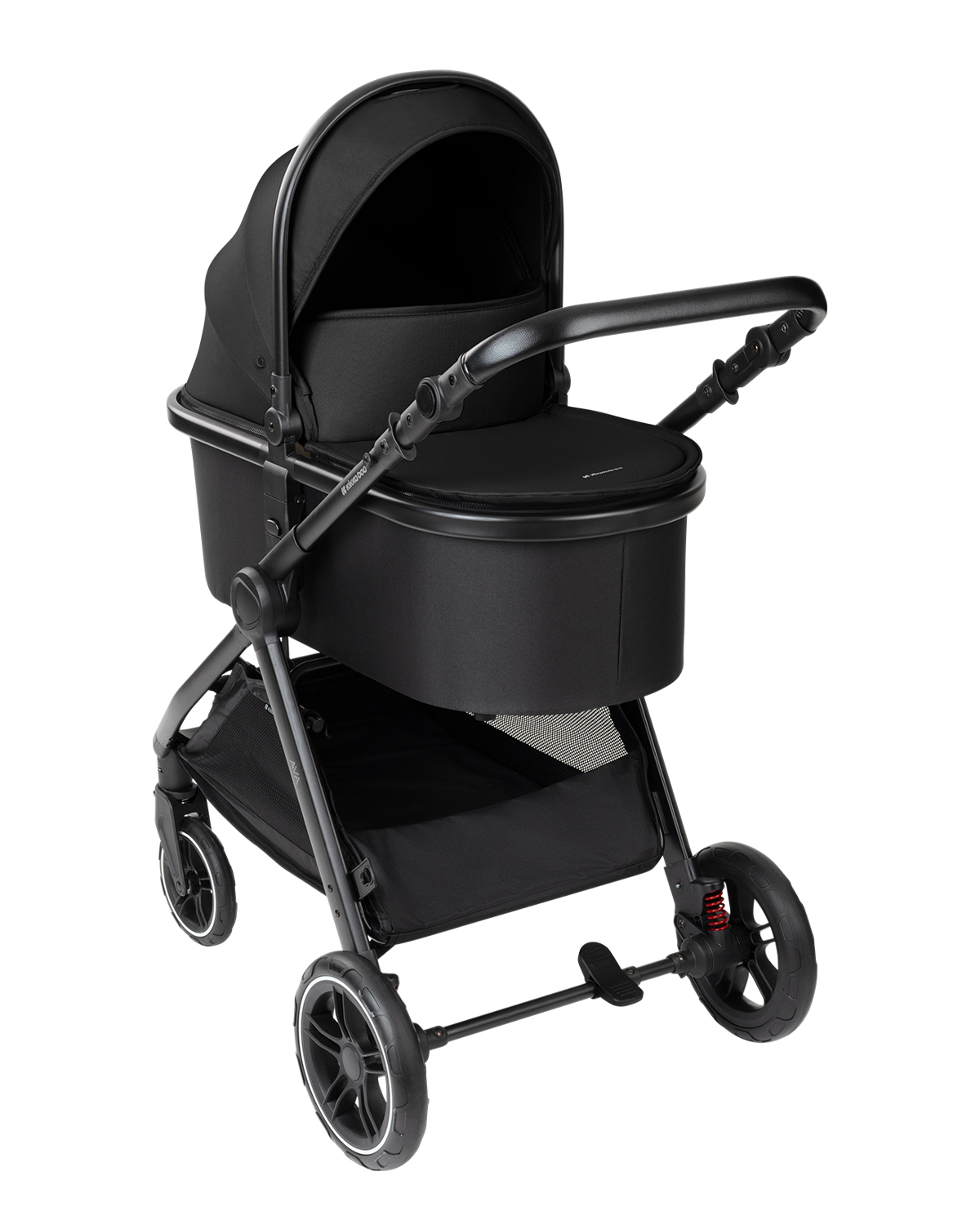 Количка:• Подходяща от раждането до 22 кг;• Лека алуминиева рамка със система за бързо и лесно сгъване;• Реверсивна седалка;• Регулируема кожена дръжка с 9 позиции;• Сенник с козирка и прозорец за наблюдение на детето;• Отстраняем кожен предпазен борд;• 5-точков предпазен колан с меки раменни подложки и покритие на долната катарама;• 360 градуса въртене на предните колела със заключващ механизъм;• Големи задни 12“ гуми и 9“ предни гуми;• Амортисьори на колелата; • Задна спирачка с едно докосване; • Регулируем налкон на седалката в 3 позиции;• Непромокаем плат с UPF50+• Тествано в съответствие с EN 1888-2:2018+A1:2022 от STS Testing Services. Кош за новородено:• Мек матрак;• Сенник с козирка;• Тествано в съответствие с EN 1466:2023 от TÜV SÜD. Столче за кола: • i-SIZE (40-87 см); • Регулируема ергономична дръжка;• Отсраняем сенник; • Мека подложка на седалка; • Регулируем сенник; • 3-точков предпазен колан с меки раменни подложки и покритие на долната катарама;• Тествано в съответствие с Регламент за изпитване ECE R129/03 от TÜV SÜD. Включени аксесоари: Покривало за крачета на седалката и коша за новородено, адаптори и чанта. Размери:- Количка: 84×59.5×102.5 см / Сгъната: 37×59.5×72 см / 10.2 кг- Кош за новородено: 84x40x67 см / 3.8 кг- Стол за кола: 64-69x37x57 см / 3.3 кг- Кашон: 84x51x45 см / 19.3 кг / 1 сет/кашон