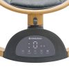 • Подхоляща от раждането до 9кг;• Лека алуминиева рамка с покритие, наподобяващо дърво;• Изключително тих люлеещ режим;• 5 степени на люлеещия механизъм;• Бутон за заключване;• Touchscreen дисплей;• Музикален панел с 10 мелодии и регулируеми нива на звука;• Таймер с 8, 15 и 30 минути;• Отстраняем сенник с комарник и козирка;• Играчки;• 5-точкова система за сигурност;• Противоплъзгаща основа;• Bluetooth;• USB порт;• Дистанционно;• AC Адаптор. Размери:- Продукт: 71x63x49.5-71 см / 3.4 кг- Цветна кутия: 66x63x16 см / 4.8 кг / 1 бр/цветна кутия