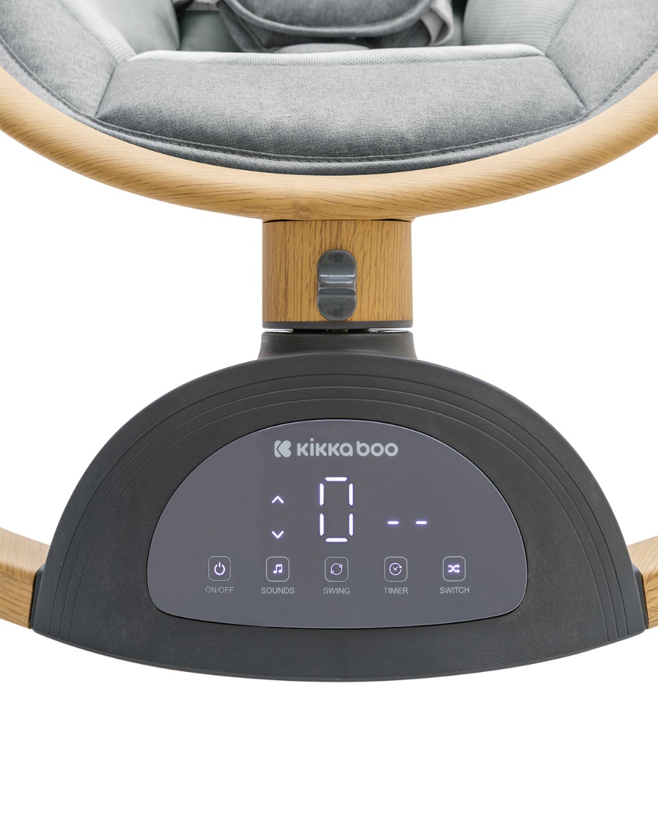 • Подхоляща от раждането до 9кг;• Лека алуминиева рамка с покритие, наподобяващо дърво;• Изключително тих люлеещ режим;• 5 степени на люлеещия механизъм;• Бутон за заключване;• Touchscreen дисплей;• Музикален панел с 10 мелодии и регулируеми нива на звука;• Таймер с 8, 15 и 30 минути;• Отстраняем сенник с комарник и козирка;• Играчки;• 5-точкова система за сигурност;• Противоплъзгаща основа;• Bluetooth;• USB порт;• Дистанционно;• AC Адаптор. Размери:- Продукт: 71x63x49.5-71 см / 3.4 кг- Цветна кутия: 66x63x16 см / 4.8 кг / 1 бр/цветна кутия