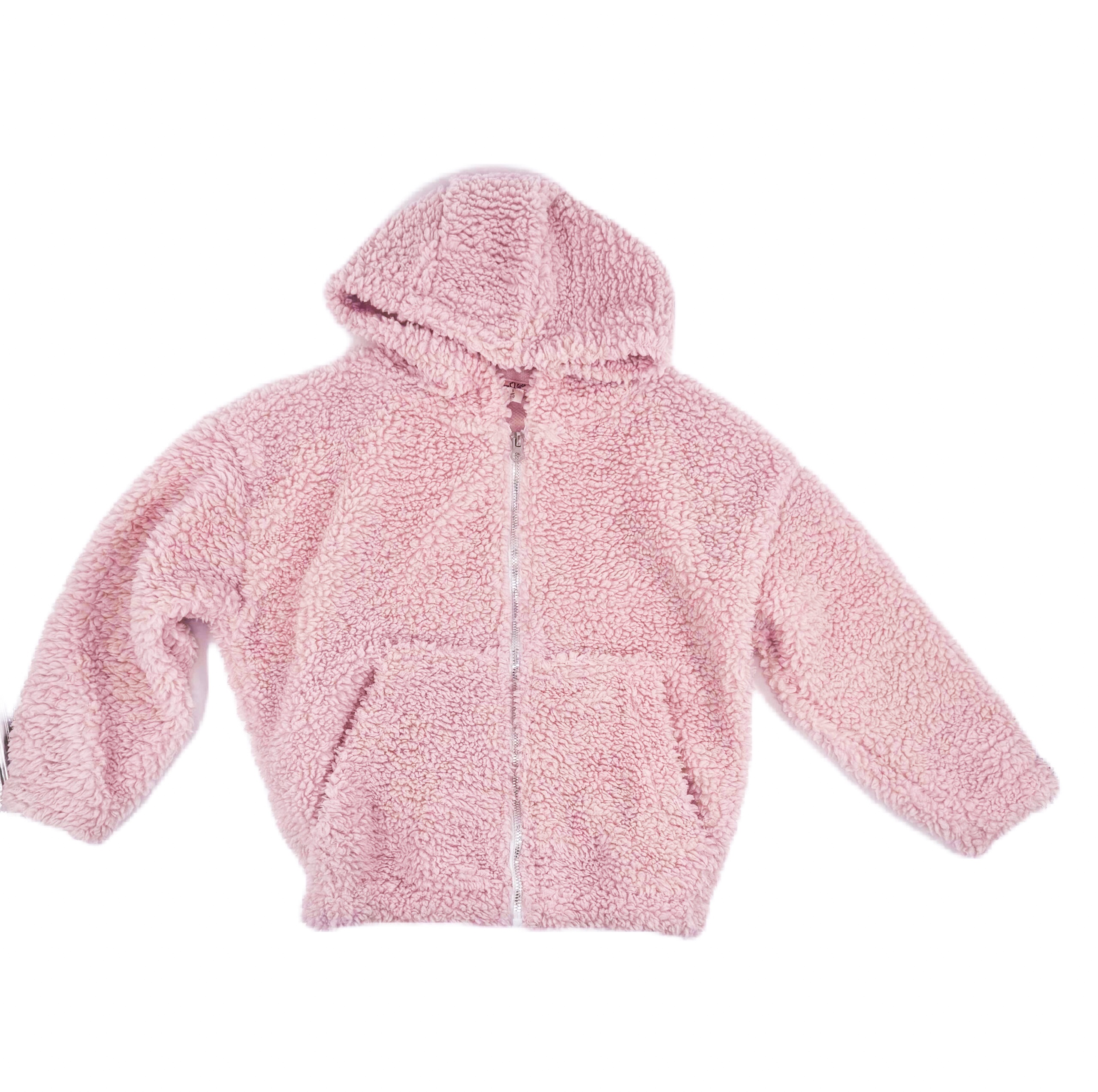Пухкаво палте за момиче с цип, джобчета и качулка.