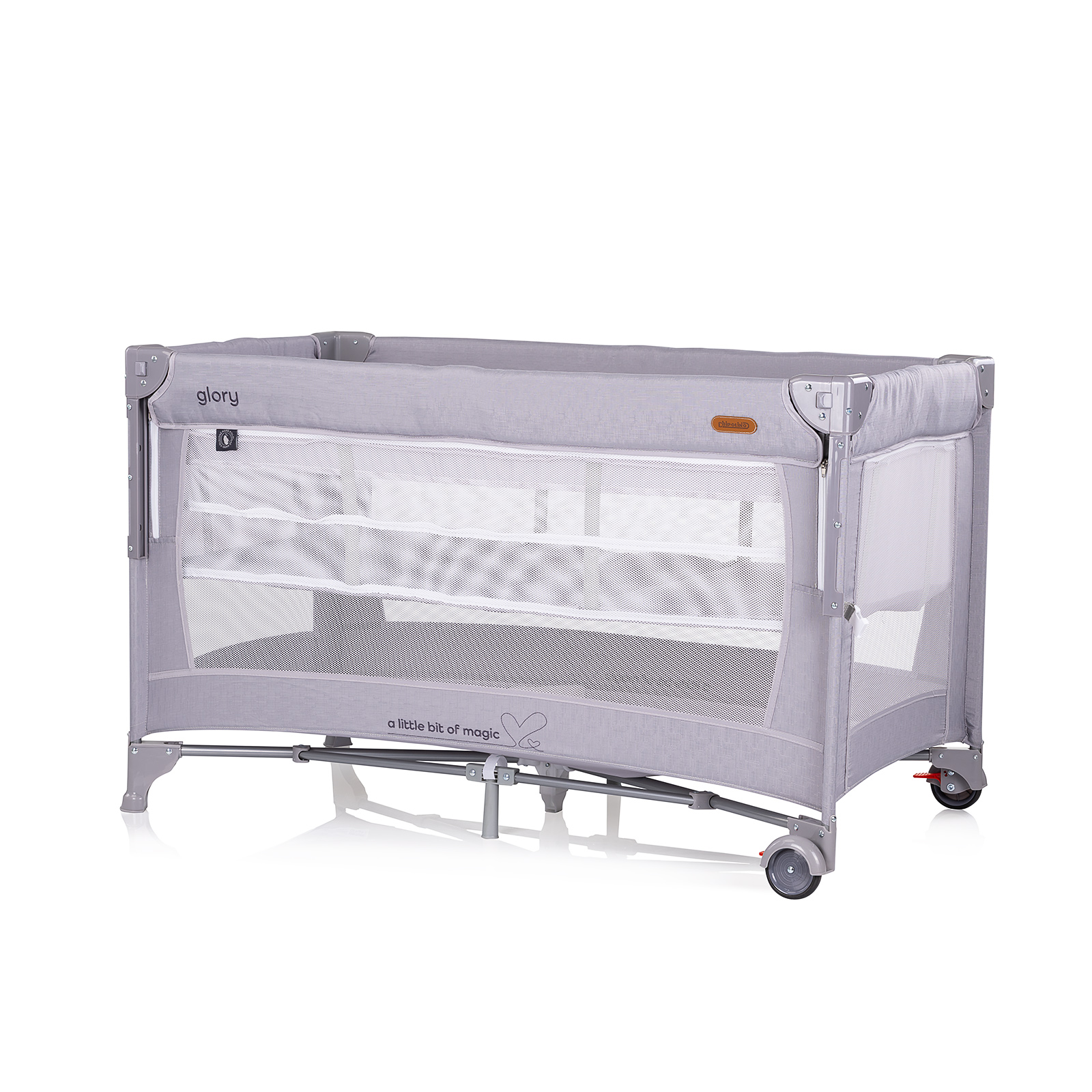Преносимата кошара Глори е продукт, създаден да ви помогне да спите до бебето си без да споделяте едно легло, точно както препоръчват експертите. Може да я носите навсякъде със себе си, благодарение на компактното ѝ сгъване и удобната чанта за пренасяне. А най-хубавото е, че няма да се налага да ставате, за да вземете бебето, когато се разплаче, и ще може сладко да сънувате, хванати за ръце. Падащата страница позволява лесен достъп до детето и възможност за здраво фиксиране към родителското легло чрез предпазни колани.