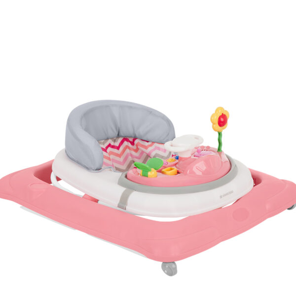 - Мултифункционален продукт, който може да се използва по 4 различни начина – като проходилка, център за игра, люлка и играчка за бутане;