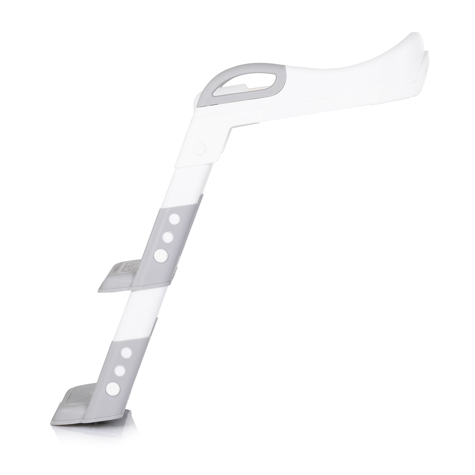 Ергономичната форма на седалката осигурява комфорт при сядане, а вградените стъпала с противоплъзгаща повърхност позволяват безопасно качване и слизане. Страничните дръжки дават допълнителна стабилност и увереност на детето по време на използване.