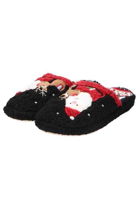 Дамски пантофи American Club SL2124 в черен цвят с коледни мотиви с Дядо Коледа. Те са топли, изработени от висококачествен текстилен материал и са предназначени за домашно ползване. Висококачествен текстил. Имат здрава, нехлъзгаща се подметка от TPR. Коледни мотиви, включващи апликация на Дядо Коледа. Идеални са както за лична употреба у дома, така и за коледен подарък.